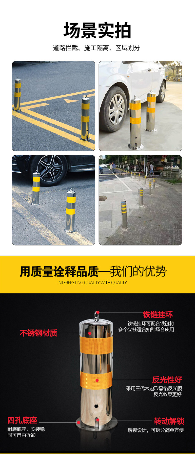 Портативная передвижная колонна предупреждения из нержавеющей стали утолщенная изоляционная передвижная встраиваемая утолщенная автомобильная барьера антиколлизионная колонна