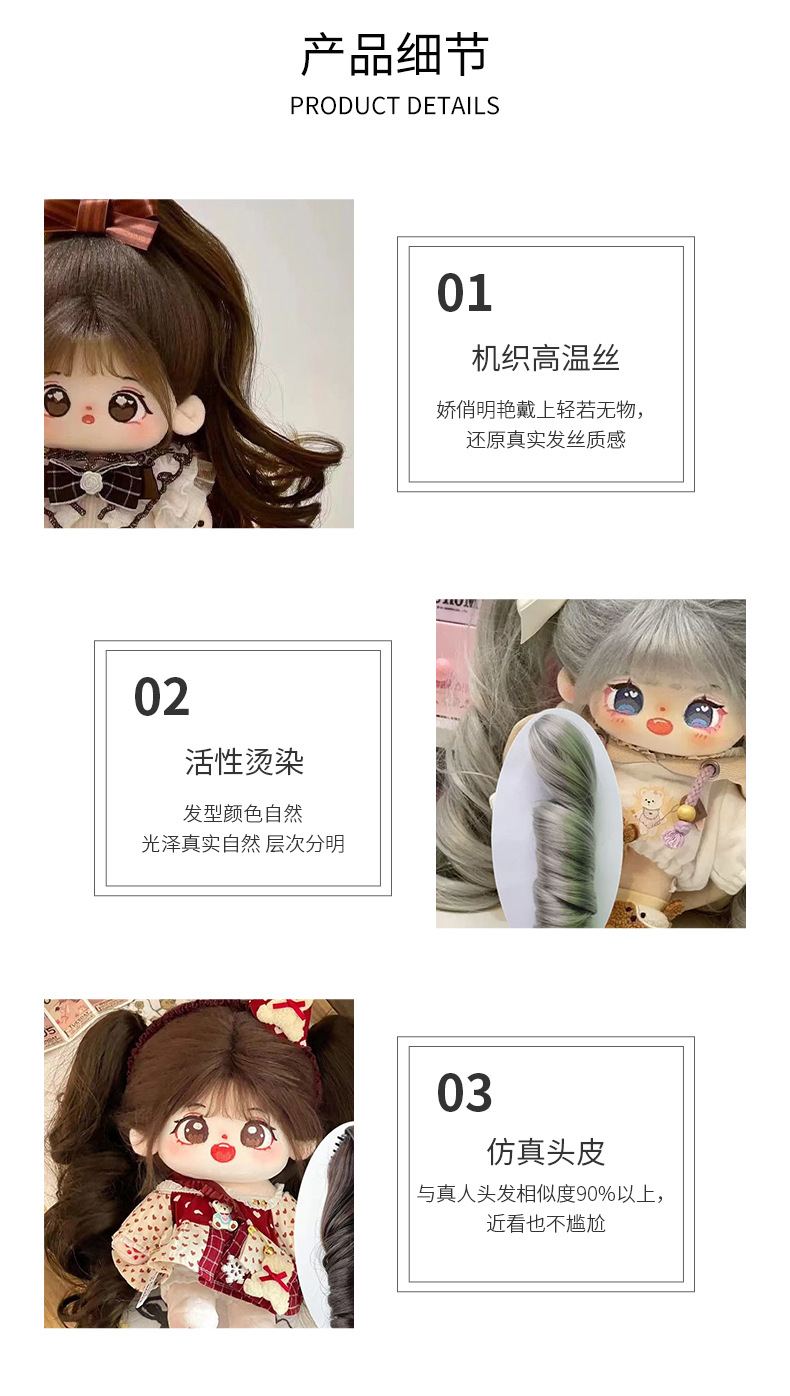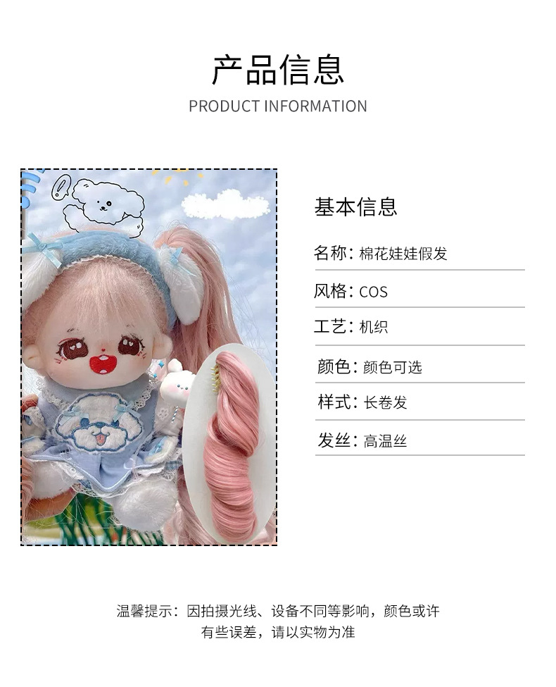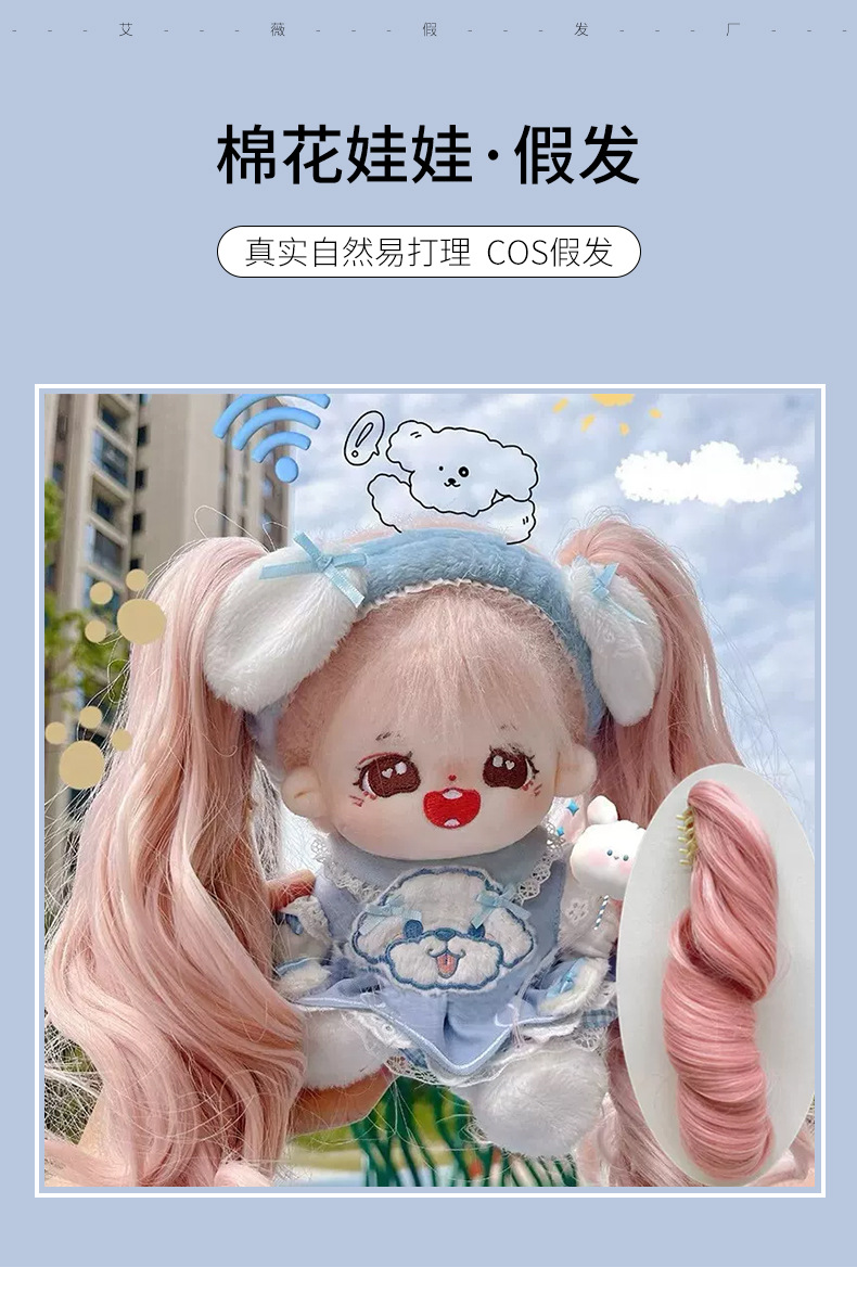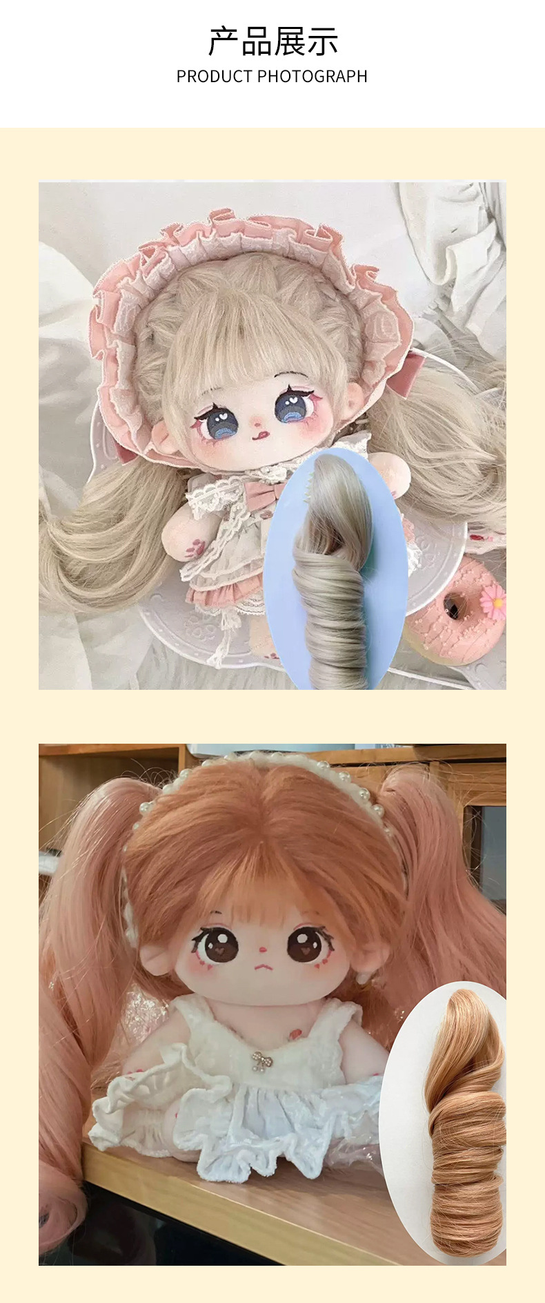 20cm棉花娃娃高温丝假发马尾小虎口夹子抓夹式长卷发马尾辫子批发