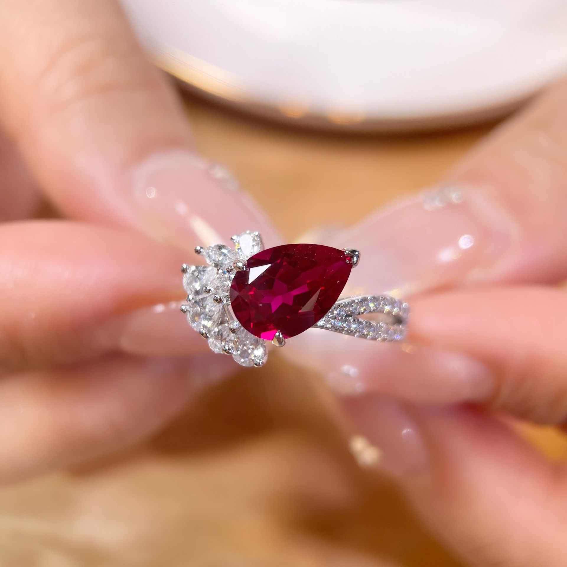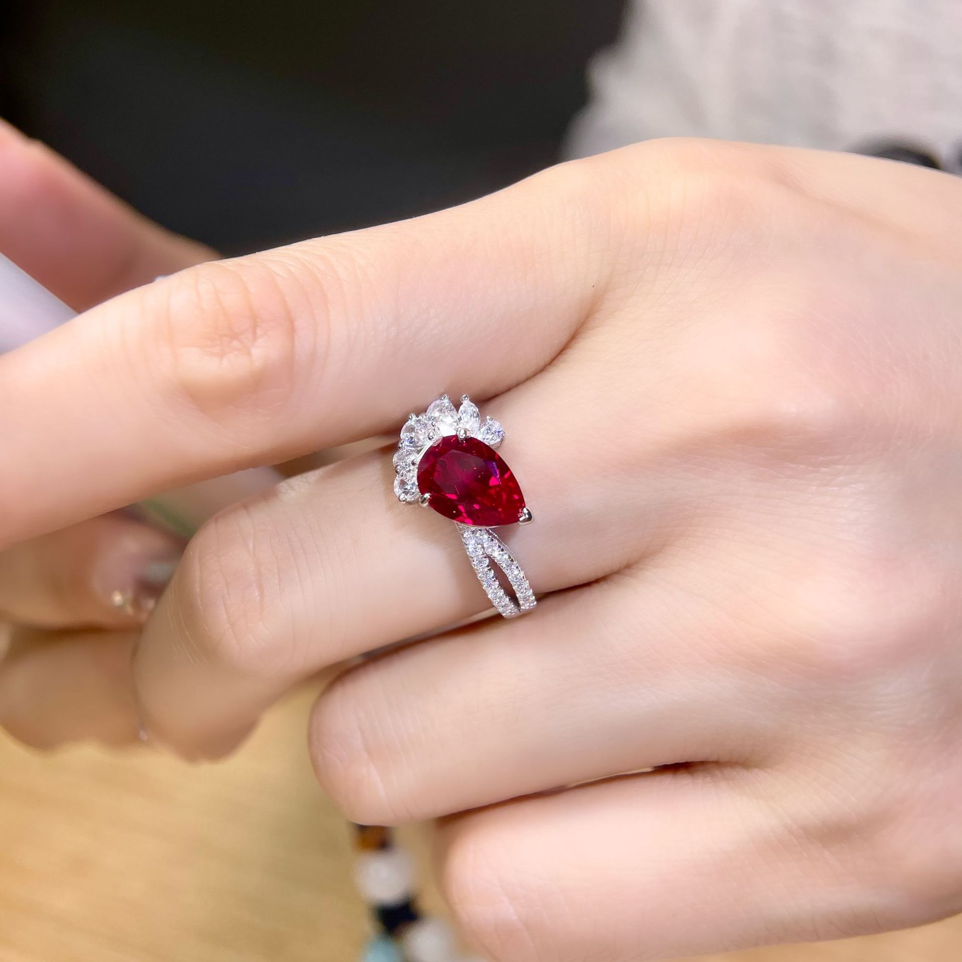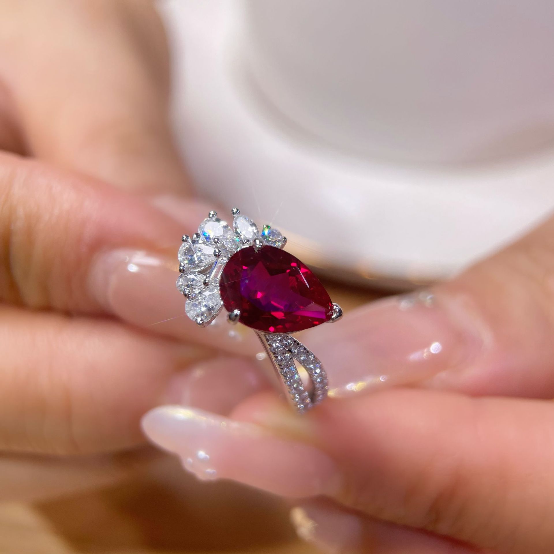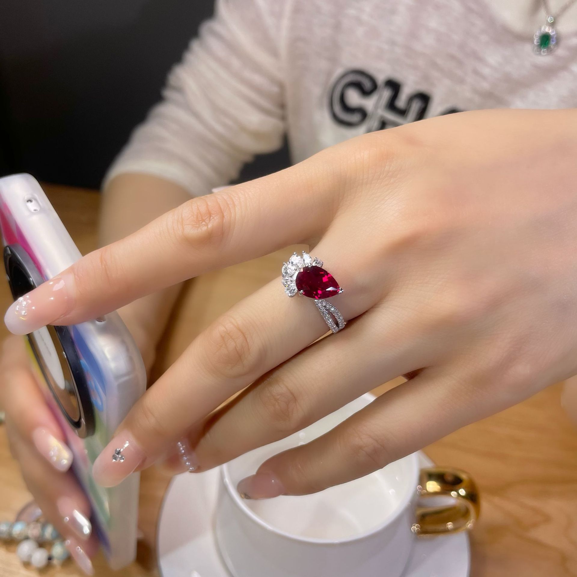 2.8ct культивированный рубин голубиная красная кольцо S925 серебро продвинутый элегантный ретро темперамент каплевидная форма