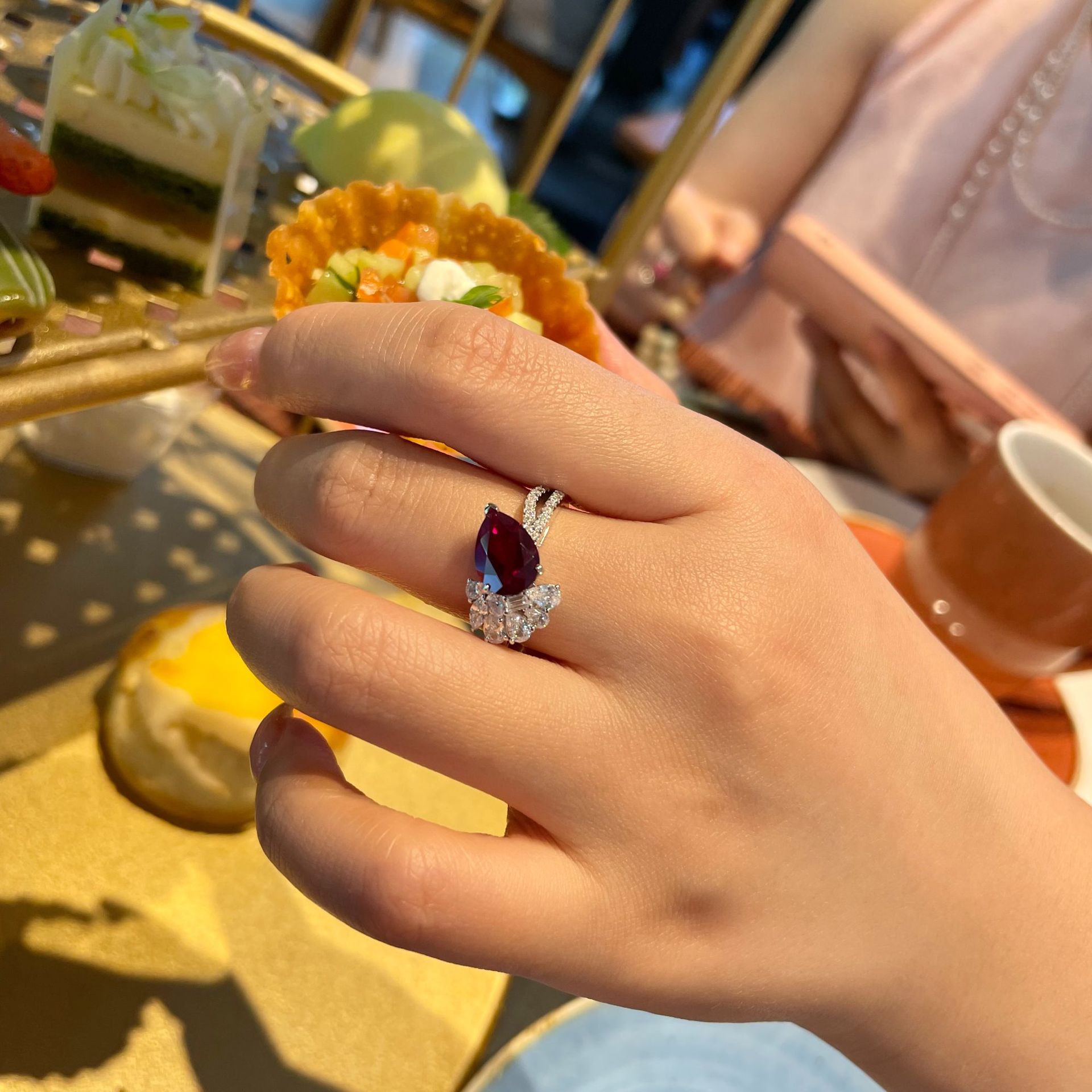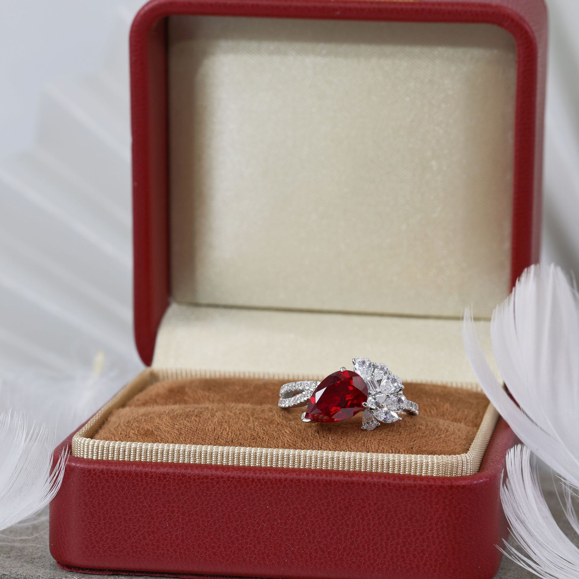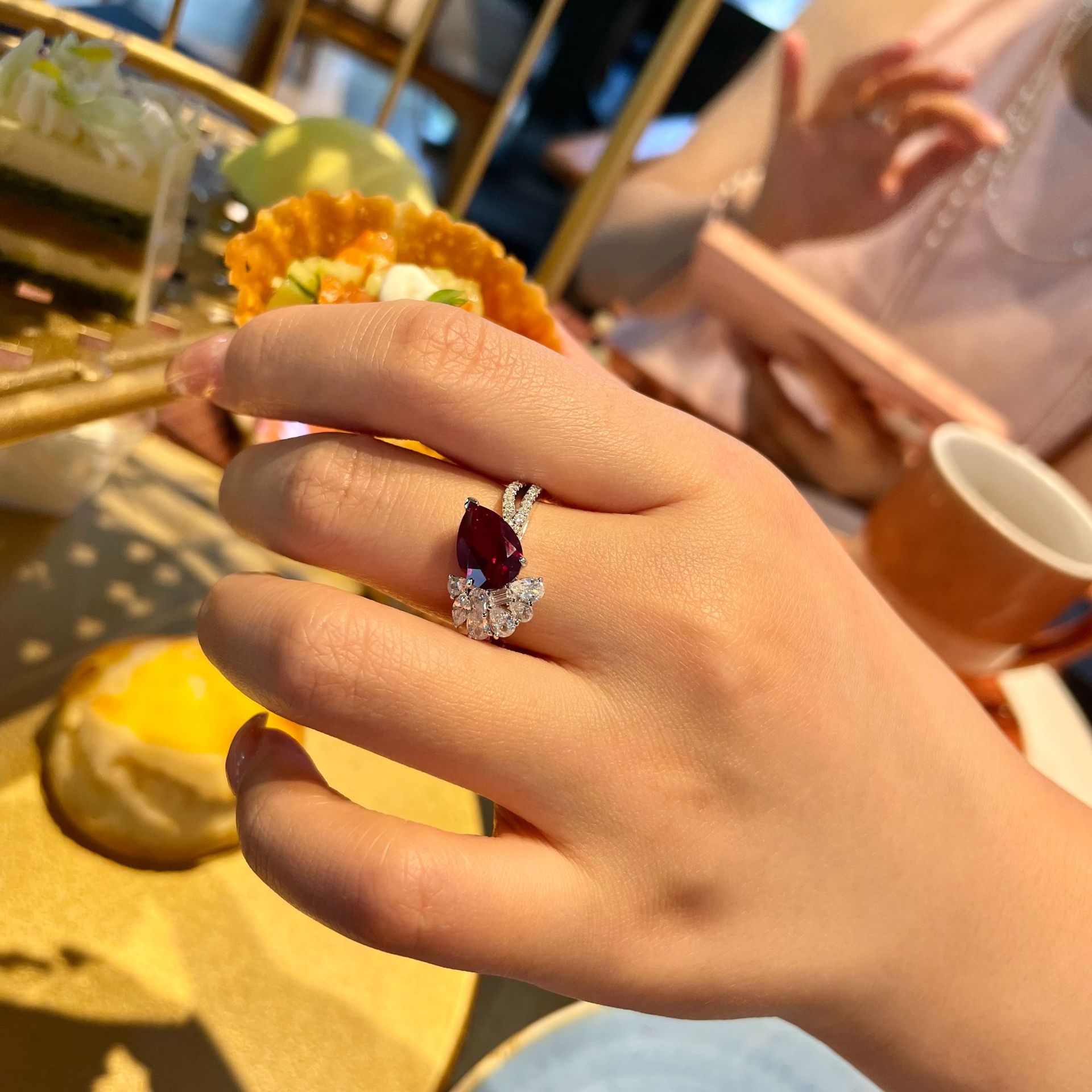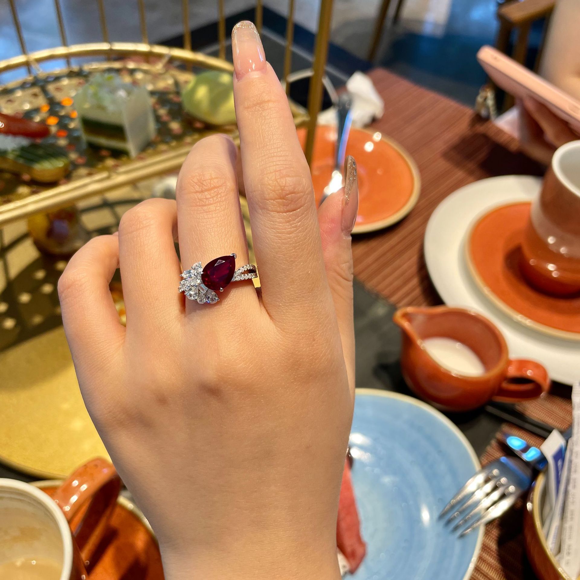 2.8ct культивированный рубин голубиная красная кольцо S925 серебро продвинутый элегантный ретро темперамент каплевидная форма