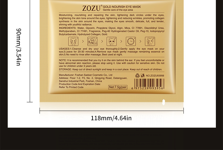 Полная английская маска для глаз Zozu Gold, увлажняющая патч для глаз, оптовая продажа, трансграничный экспорт