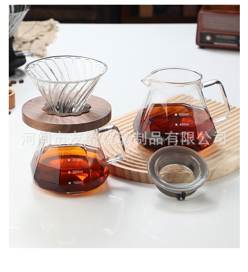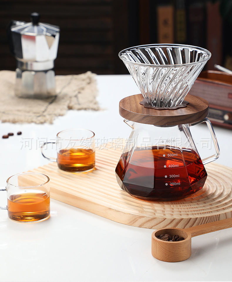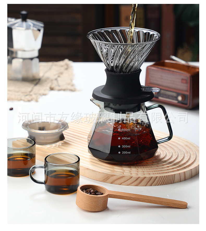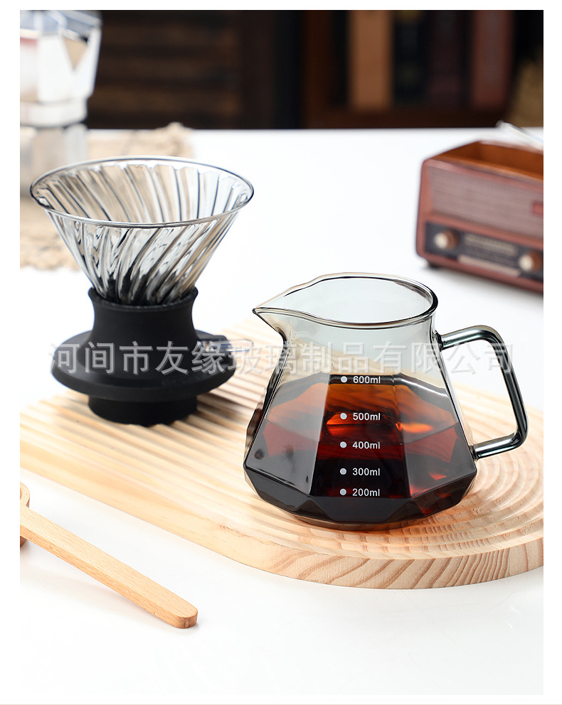 Кофейник, термостойкое стекло, восьмиугольный алмазный кофейник, кофейник для совместного использования, капельный фильтр-кубок, ручной кофейник