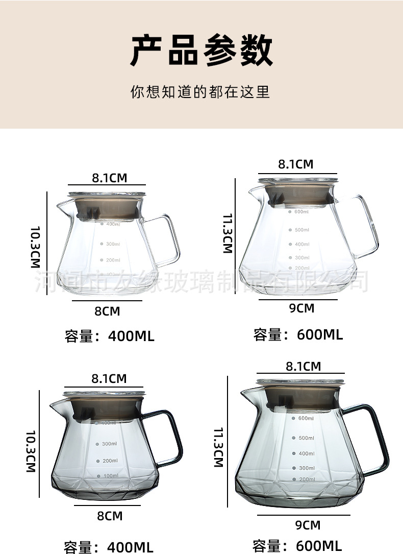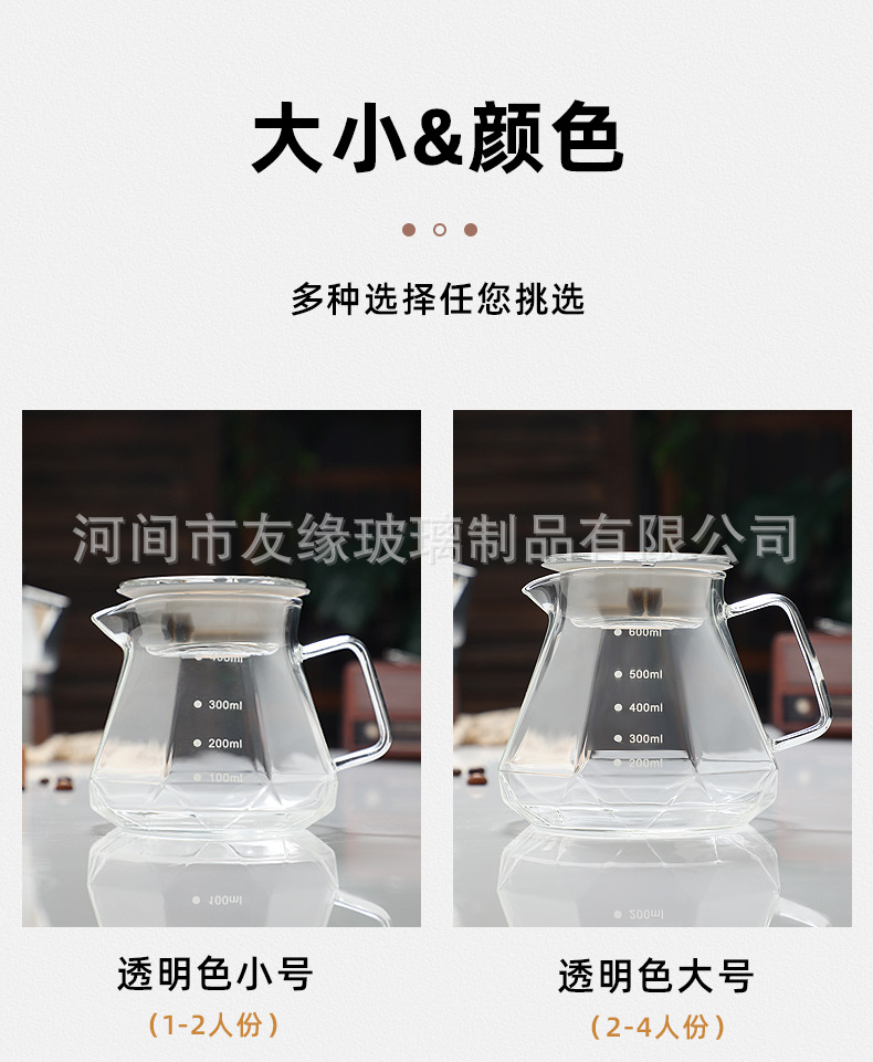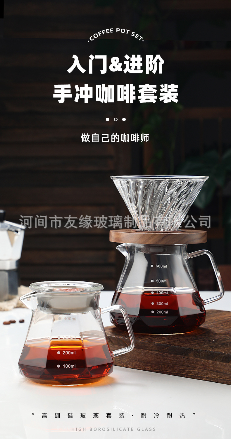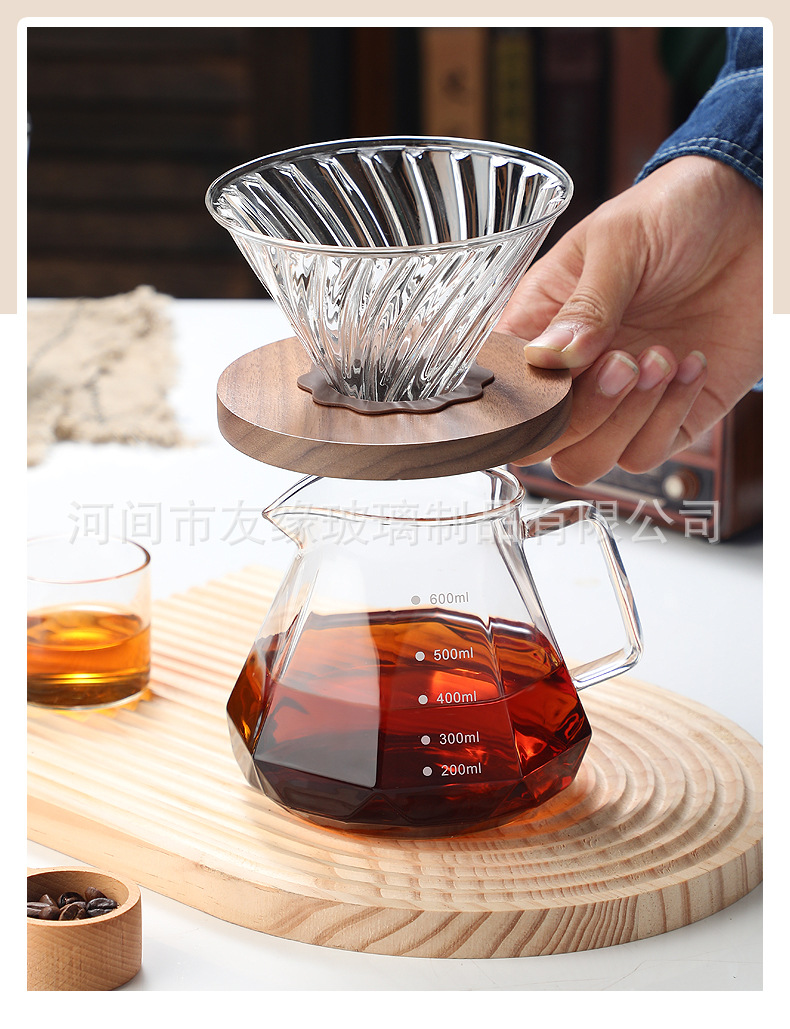 Кофейник, термостойкое стекло, восьмиугольный алмазный кофейник, кофейник для совместного использования, капельный фильтр-кубок, ручной кофейник