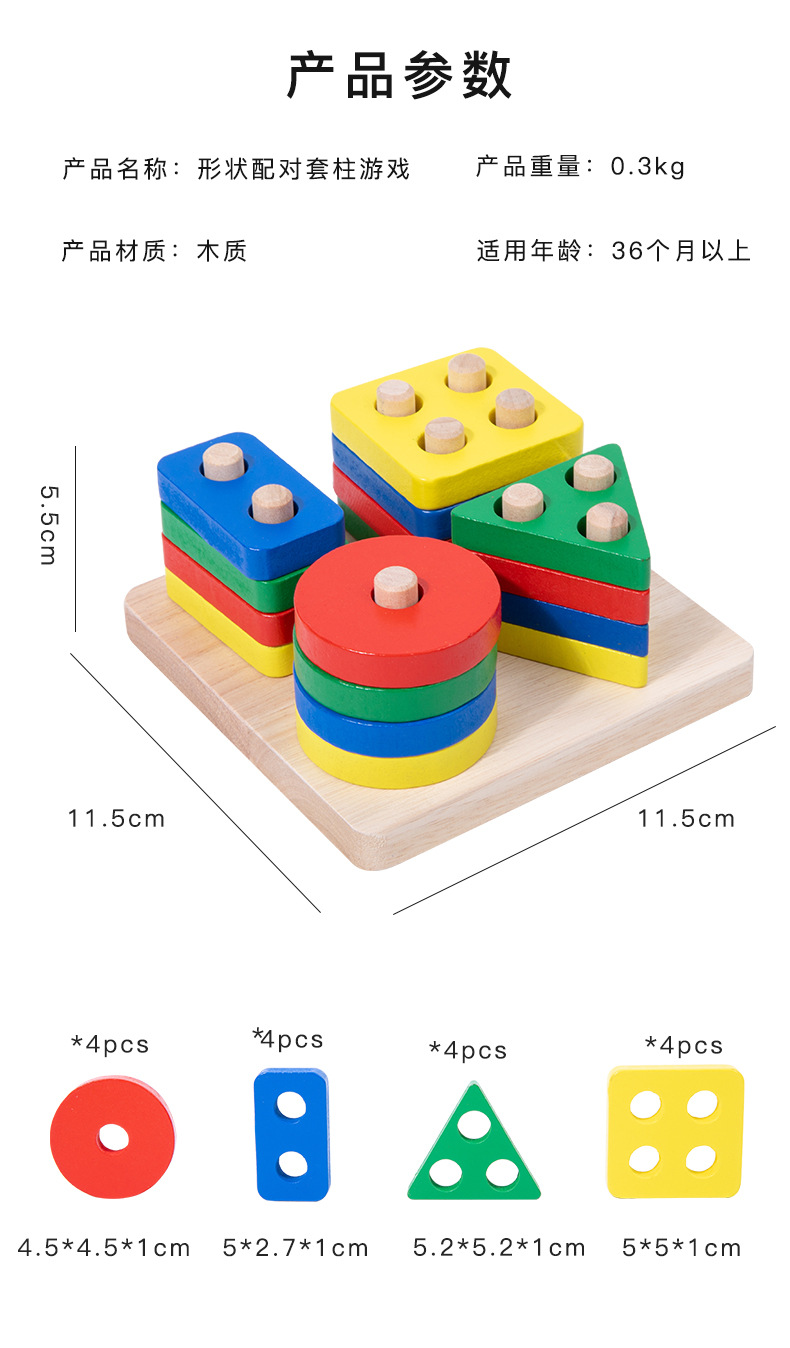 Монтессори геометрические формы для сопоставления, четыре или пять наборов колонок, игрушки для младенцев и детей раннего возраста, образовательные пособия для обучения, 1-2-3 года