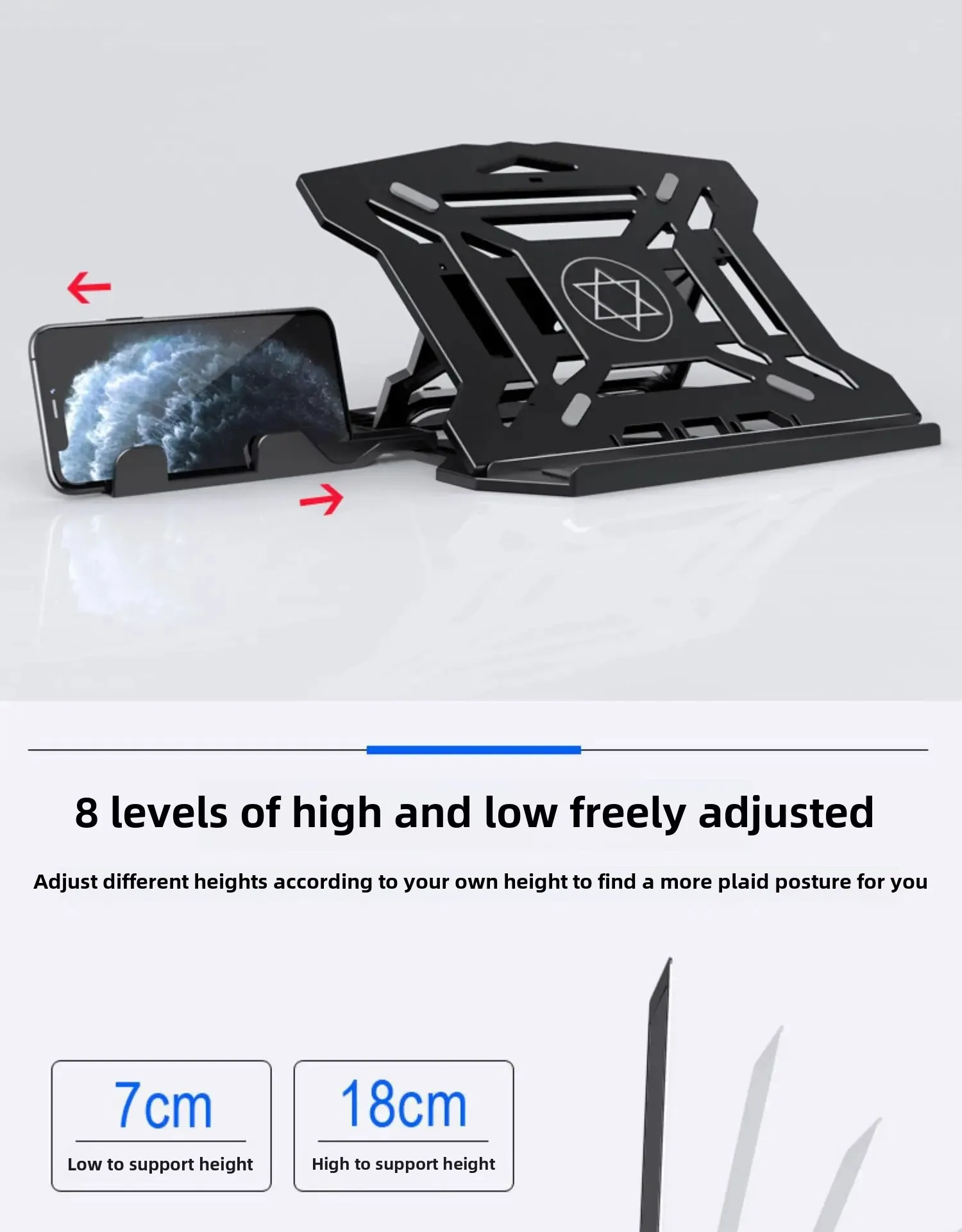 - Eight-Speed Adjustment : The N2 computer stand offers an eight-speed adjustment feature, allowing you to find the perfect angle for your laptop, enhancing comfort and productivity.