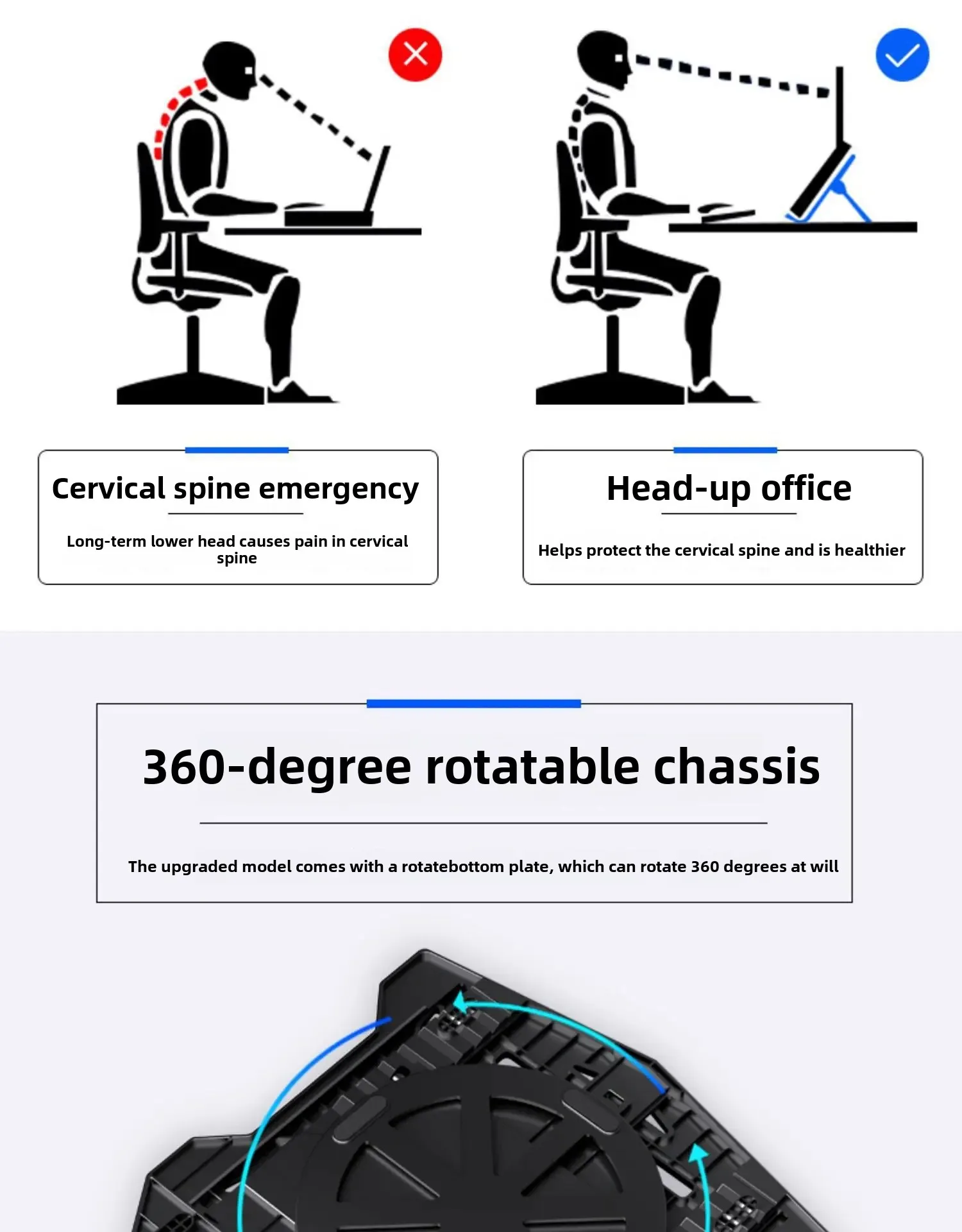 - Turntable Design : Equipped with a turntable design, this laptop stand provides smooth rotation, making it easy to switch between tasks or presentations.