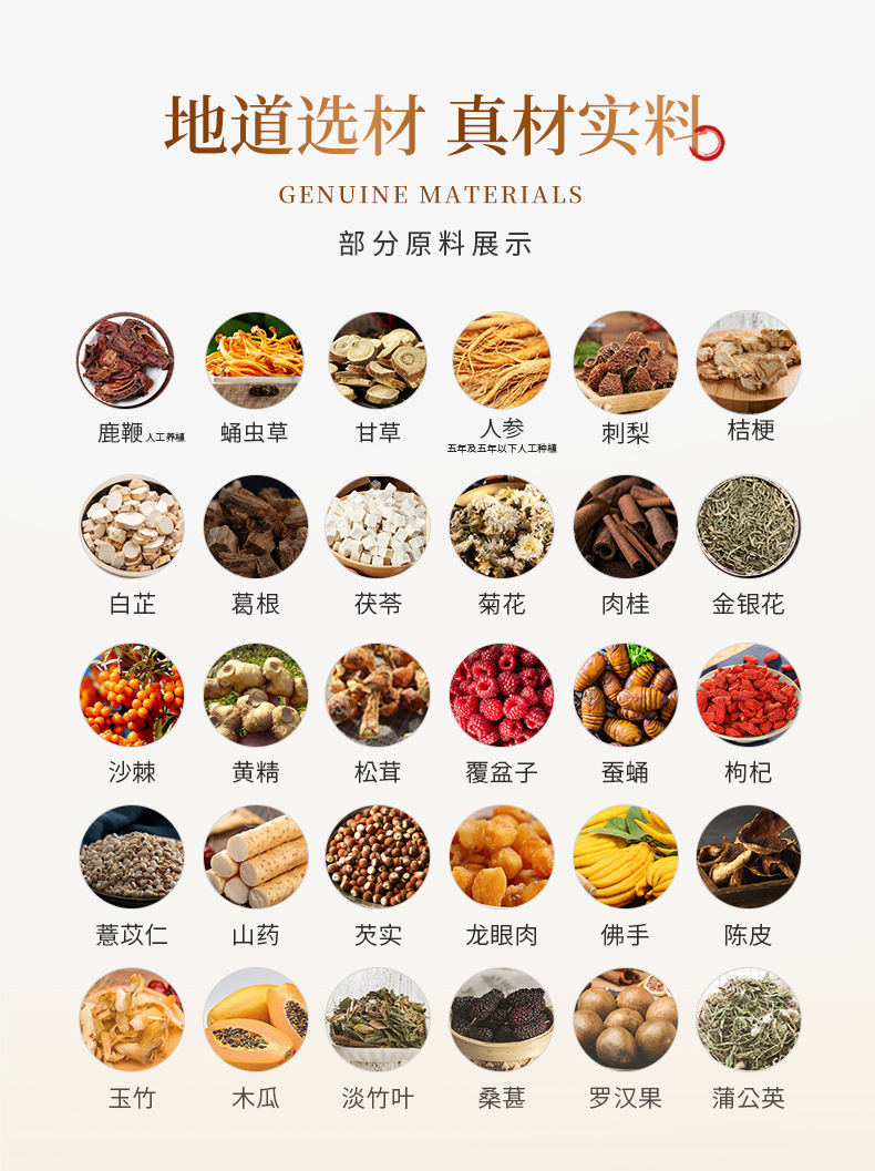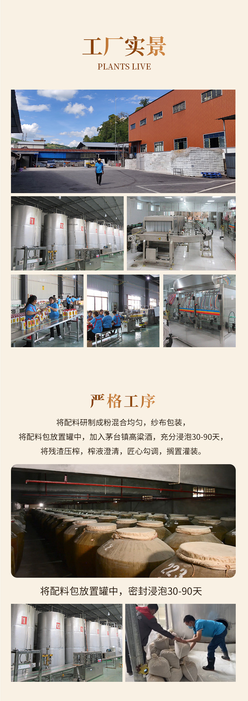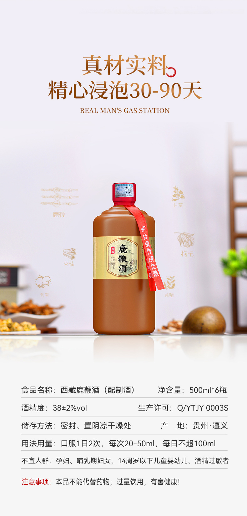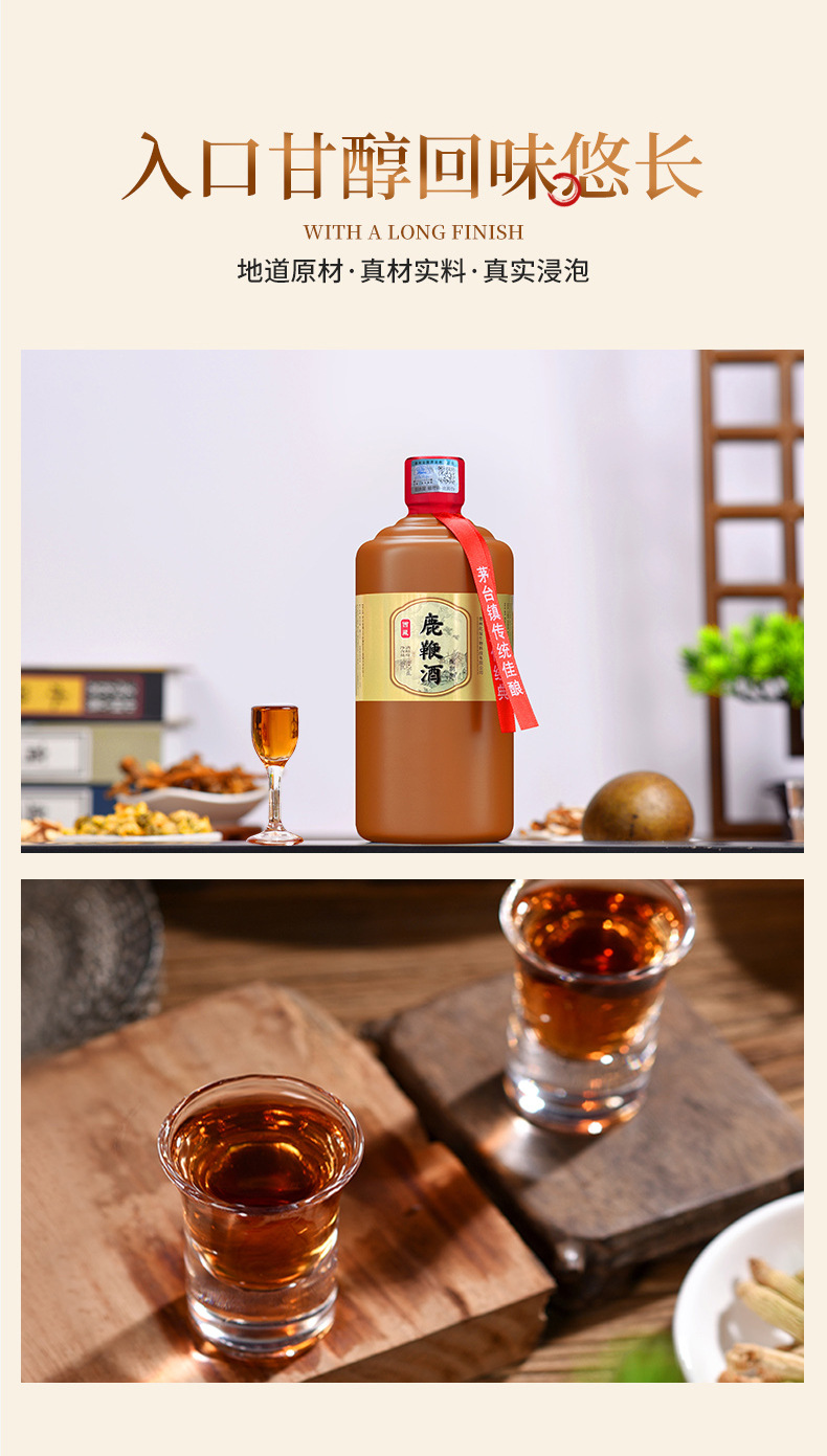 Сырьё и ингредиенты High quality liquor, deer whip (artificial cultivation), ginseng (artificial cultivation), medlar, Rosa roxburghii, coix seed, yellow essence, gorgon seed, longan meat, papaya, yam, etc.