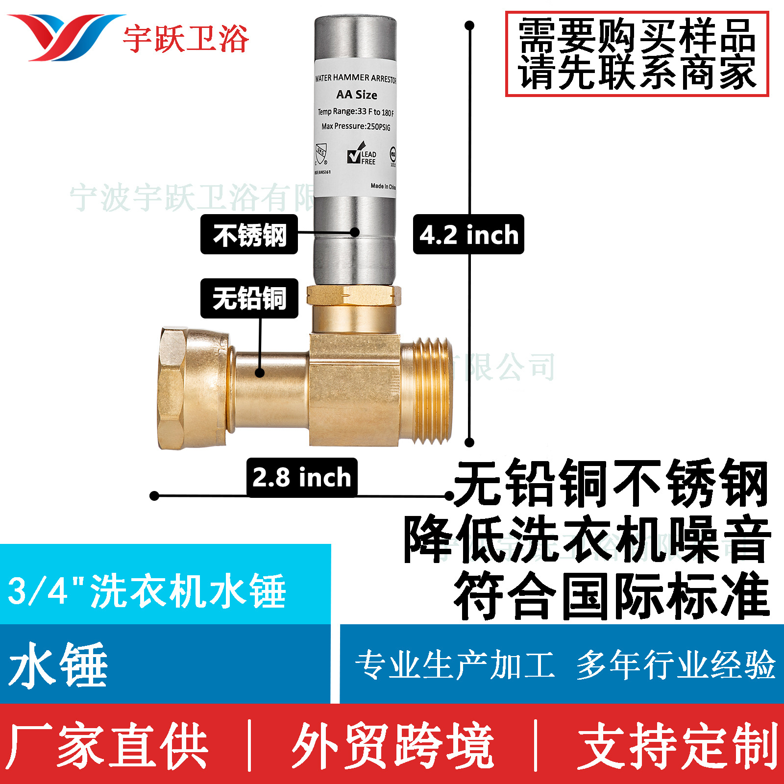 Производитель Yuyue, водяной молот подавитель с резьбой 3/4" NH для стиральной машины
