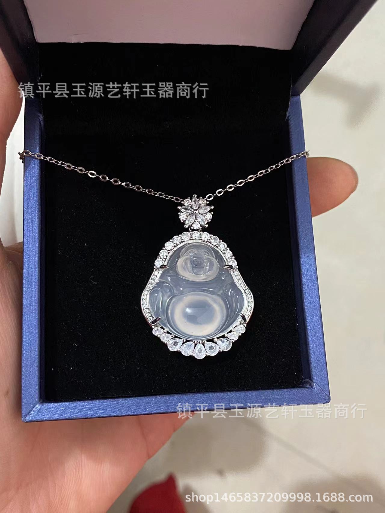Новый китайский ледяной серебряный кулон маленький халцедон Будда кулон агат Большой живот Будды ожерелье ниша женский нефрит