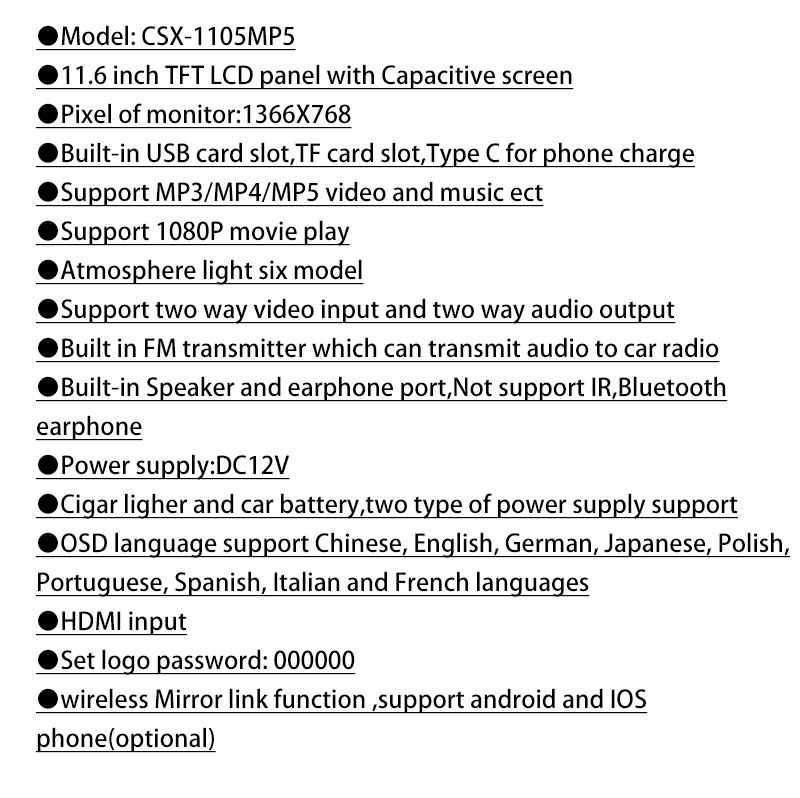 ![]() | 11.6-inch MP5 headrest hanging screen | ¥335.0 / ≈ 4 041 ₽ | 996 | 5305201663882 | |