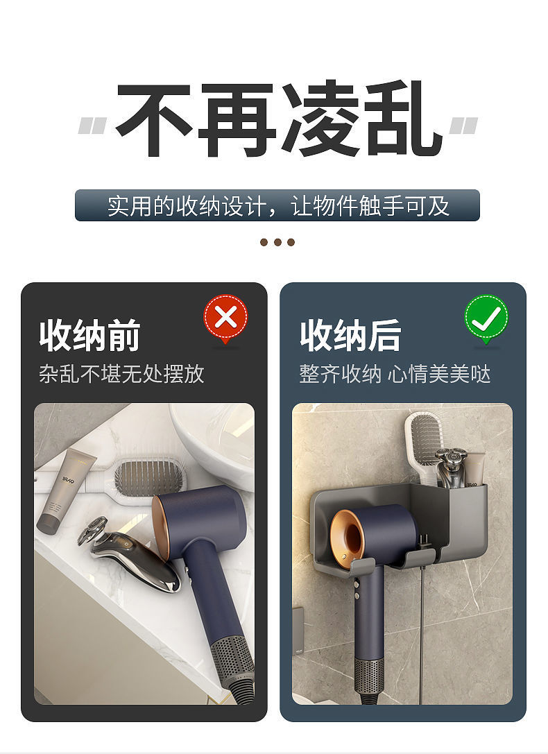 Держатель для фена настенный без сверления многофункциональный для ванной