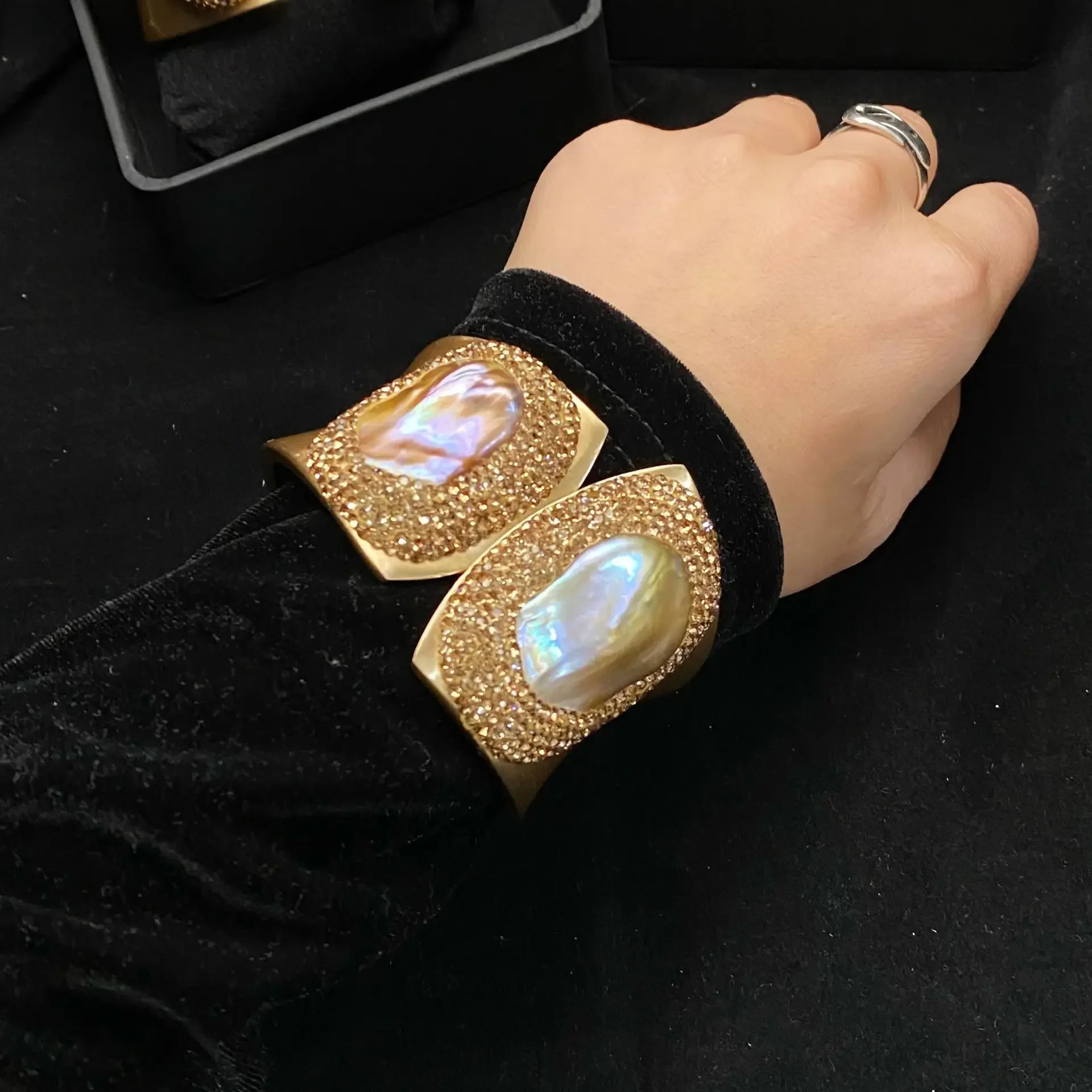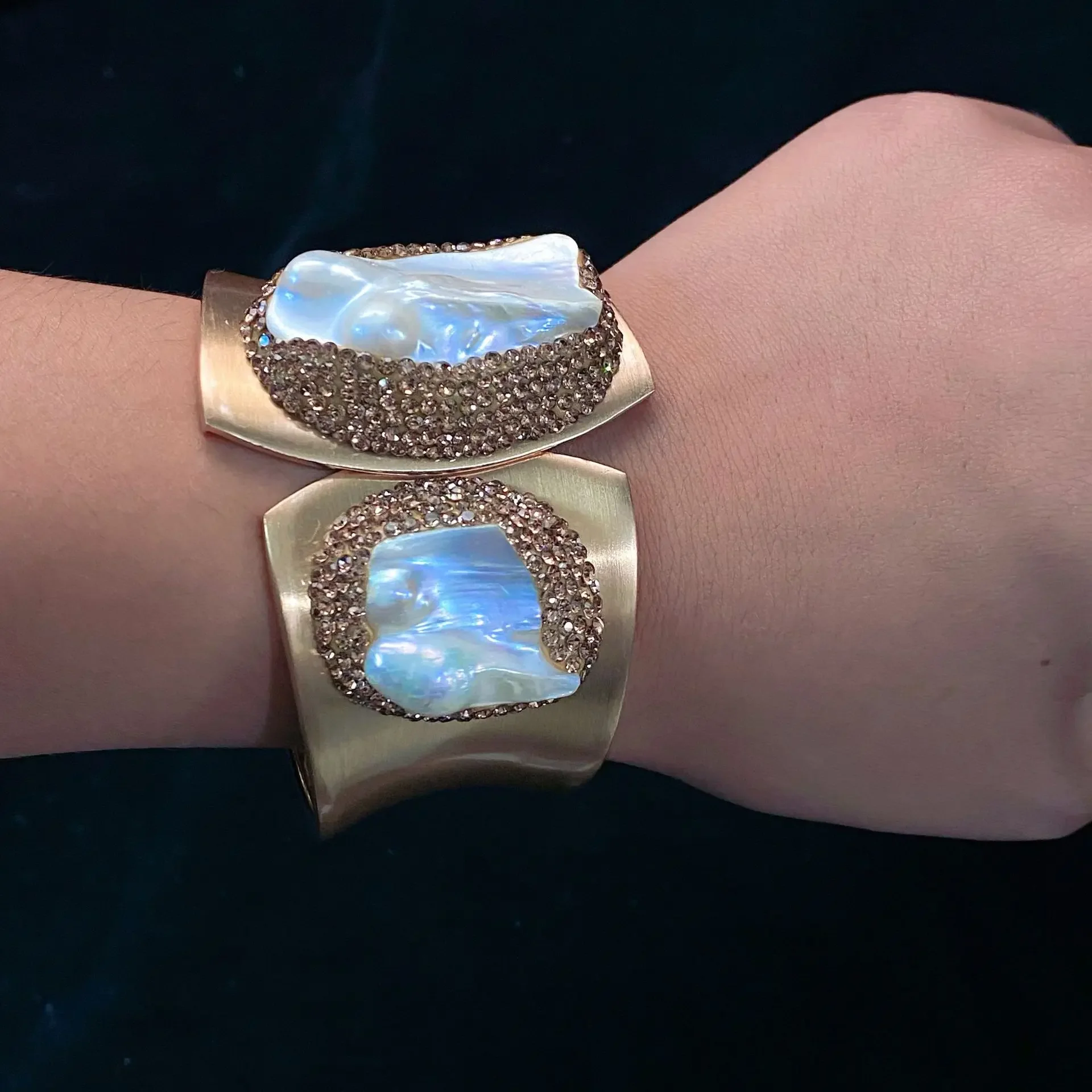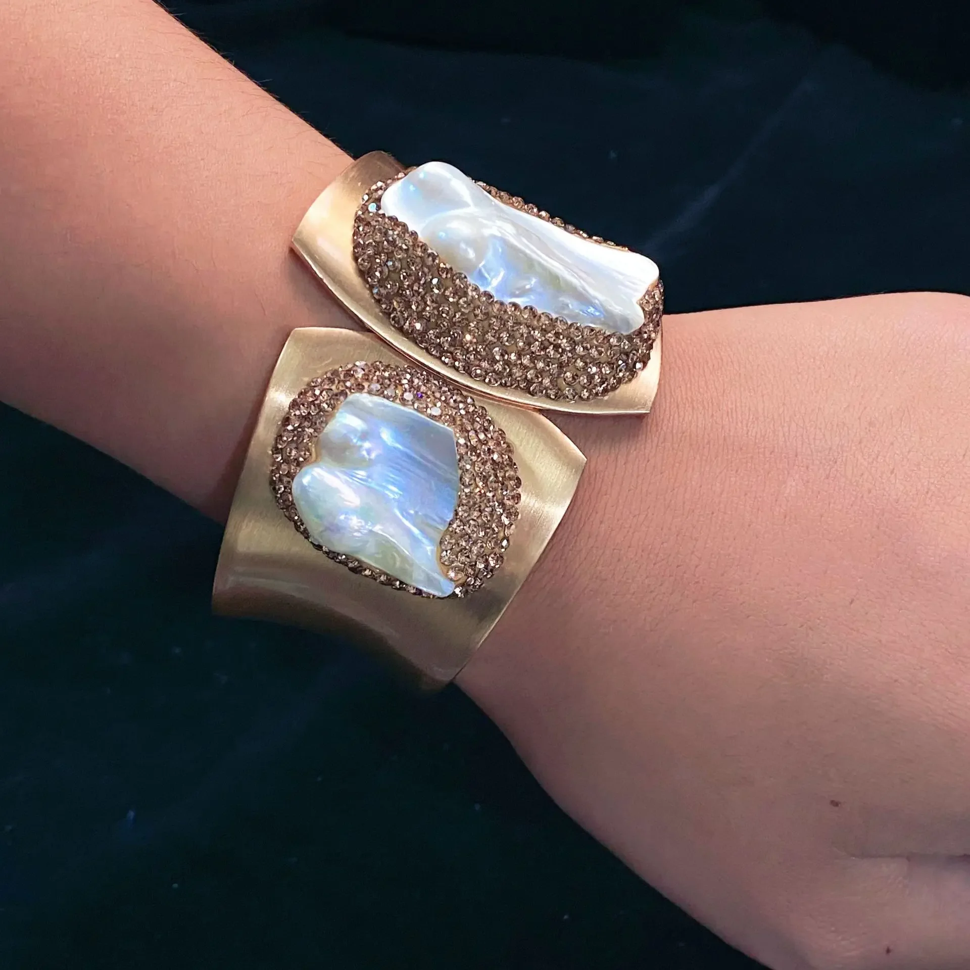 Европейская версия браслета из пресноводного жемчуга с широкими краями, ручная работа, инкрустированный, супер яркий, прямая продажа для женщин