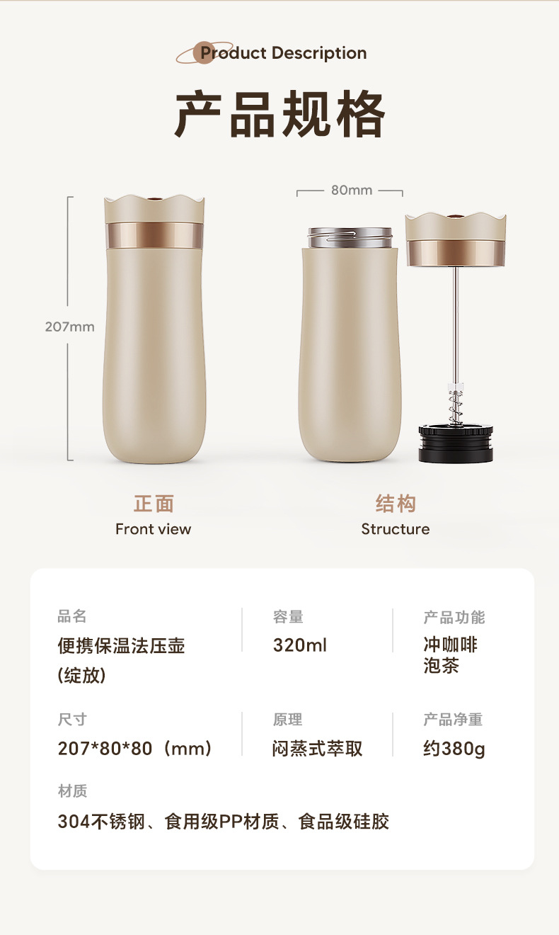 Портативный кофейный пресс iCafilas, отделение шлама, термос, нержавеющая сталь