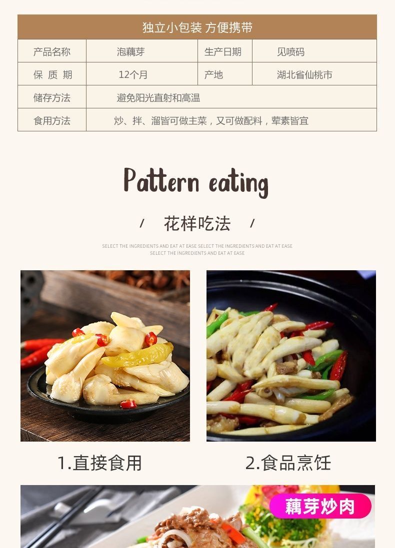 ![]() | Hot and sour lotus root sprouts 400g*20 bags/box | ¥78.0 / ≈ 941 ₽ | 9516 | 5136894297450 |