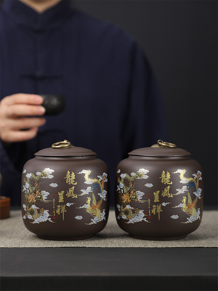 Ретро черно-фиолетовая керамическая банка для чая герметичная банка для черного чая белого чая пуэра