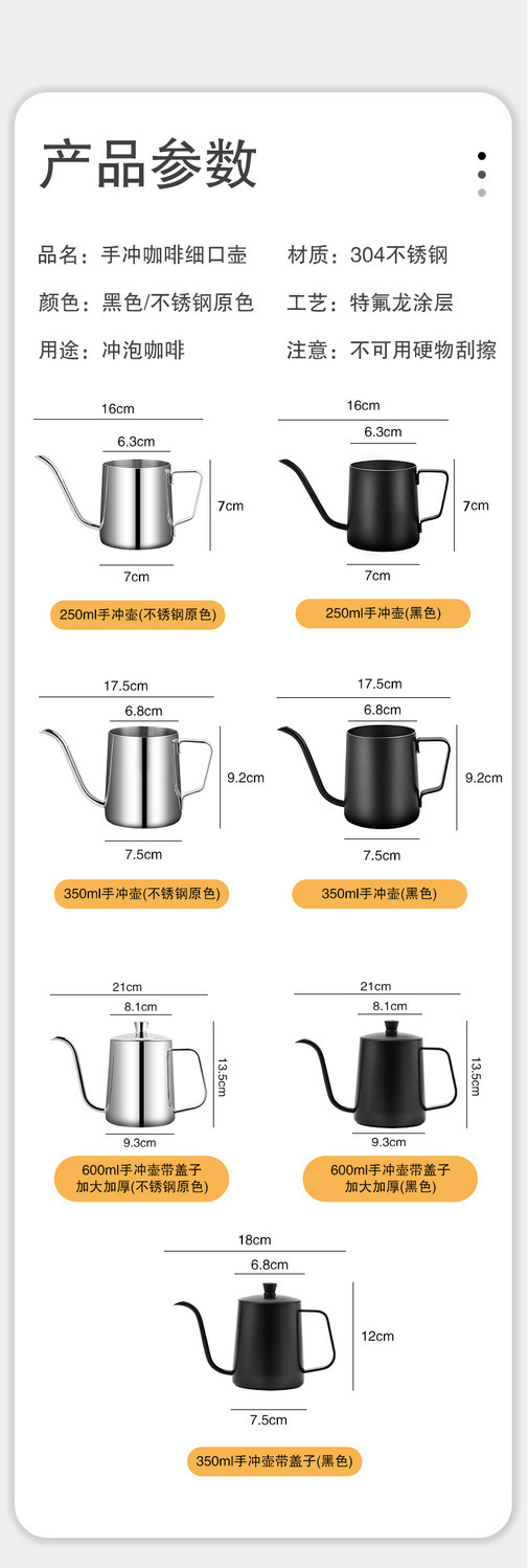 Кофейная кастрюля из нержавеющей стали с Тефлоном, маленький носик, бытовая, длинный носик