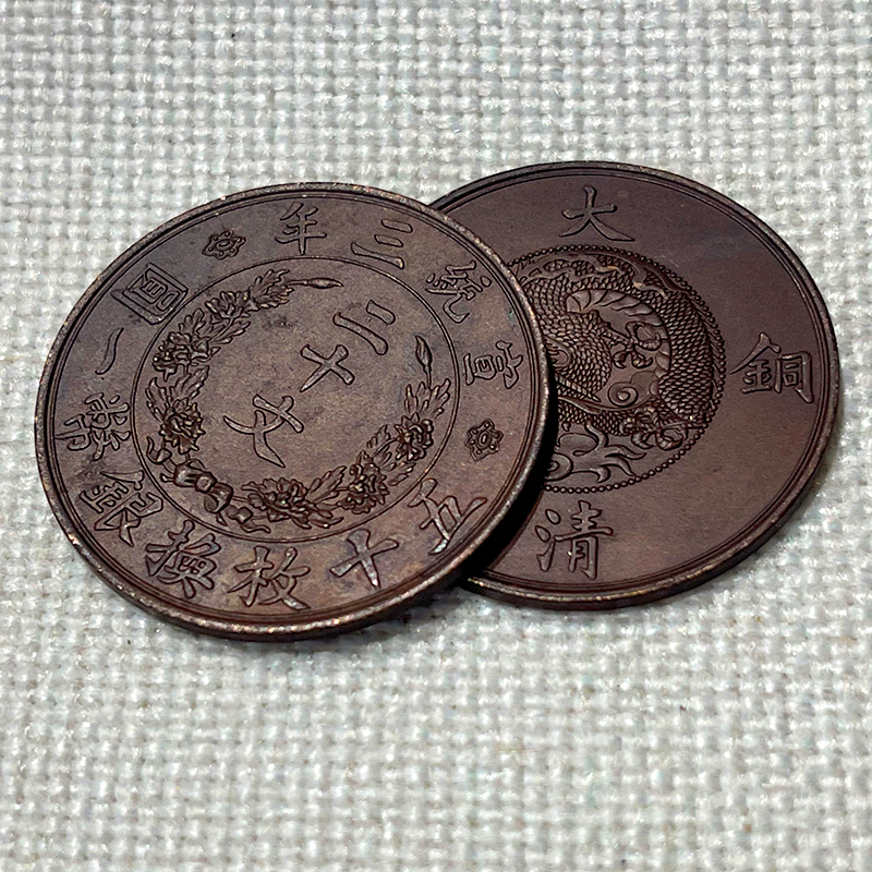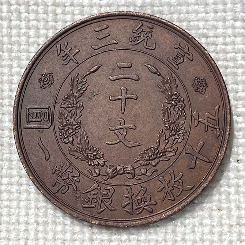 Шоколадная бронзовая монета, третий год Сюаньтун, двадцать центов, один дракон, красивая старая бронзовая монета