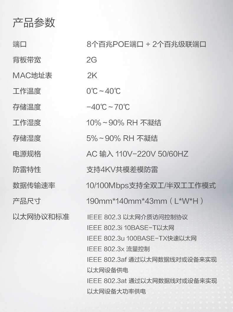 Коммутатор Leike на 10 портов 100м Poe, стальной корпус, для видеонаблюдения, AI умный сторож S10P