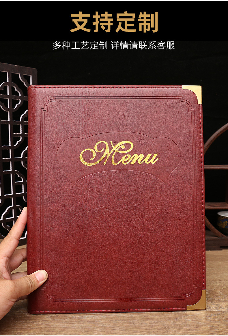 Книга рецептов из кожи, ПВХ, меню с кольцевым креплением, прайс-лист в западном стиле, папка для кассира в ресторане, книга заказов на столе, кастомизация