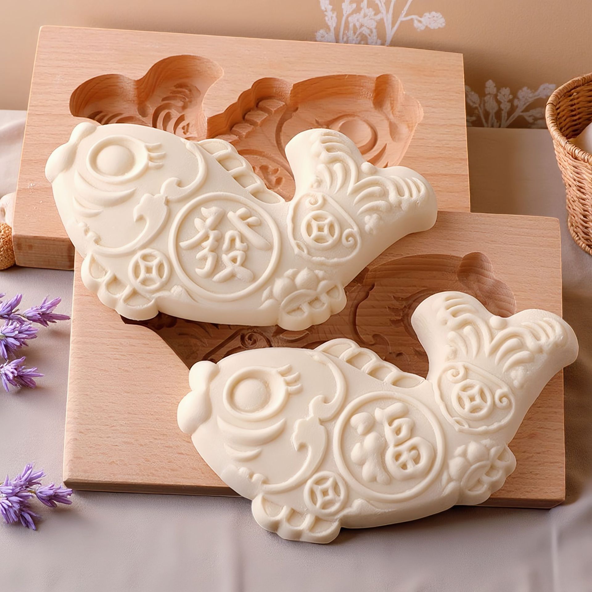 Форма для парового хлеба из дерева с узором Фу Сяосяо, инструмент для цветочного пирога, большой деревянный картон для парового хлеба и лунного пирога