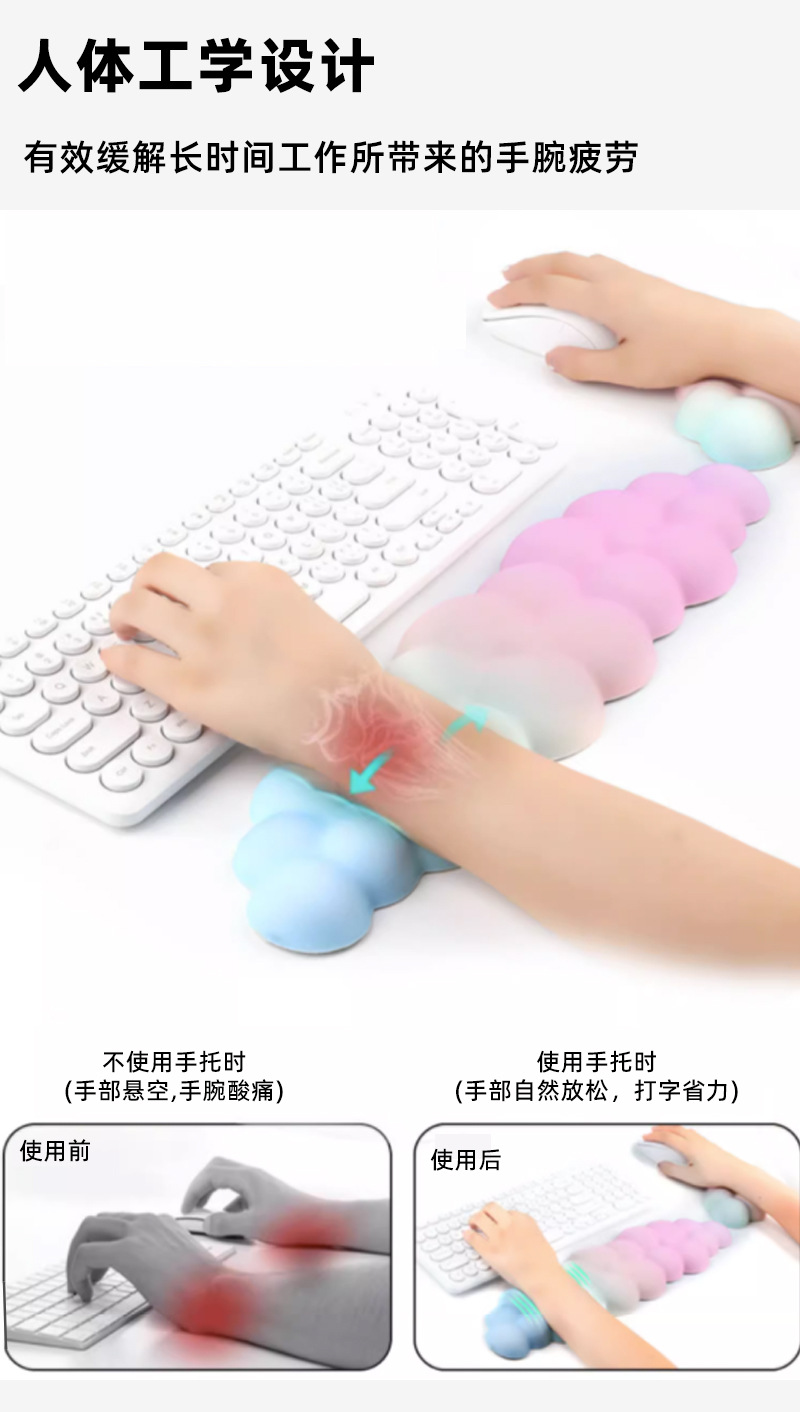 云朵鼠标垫渐变颜色键盘手托 慢回弹护手腕托记忆棉防滑护腕手托