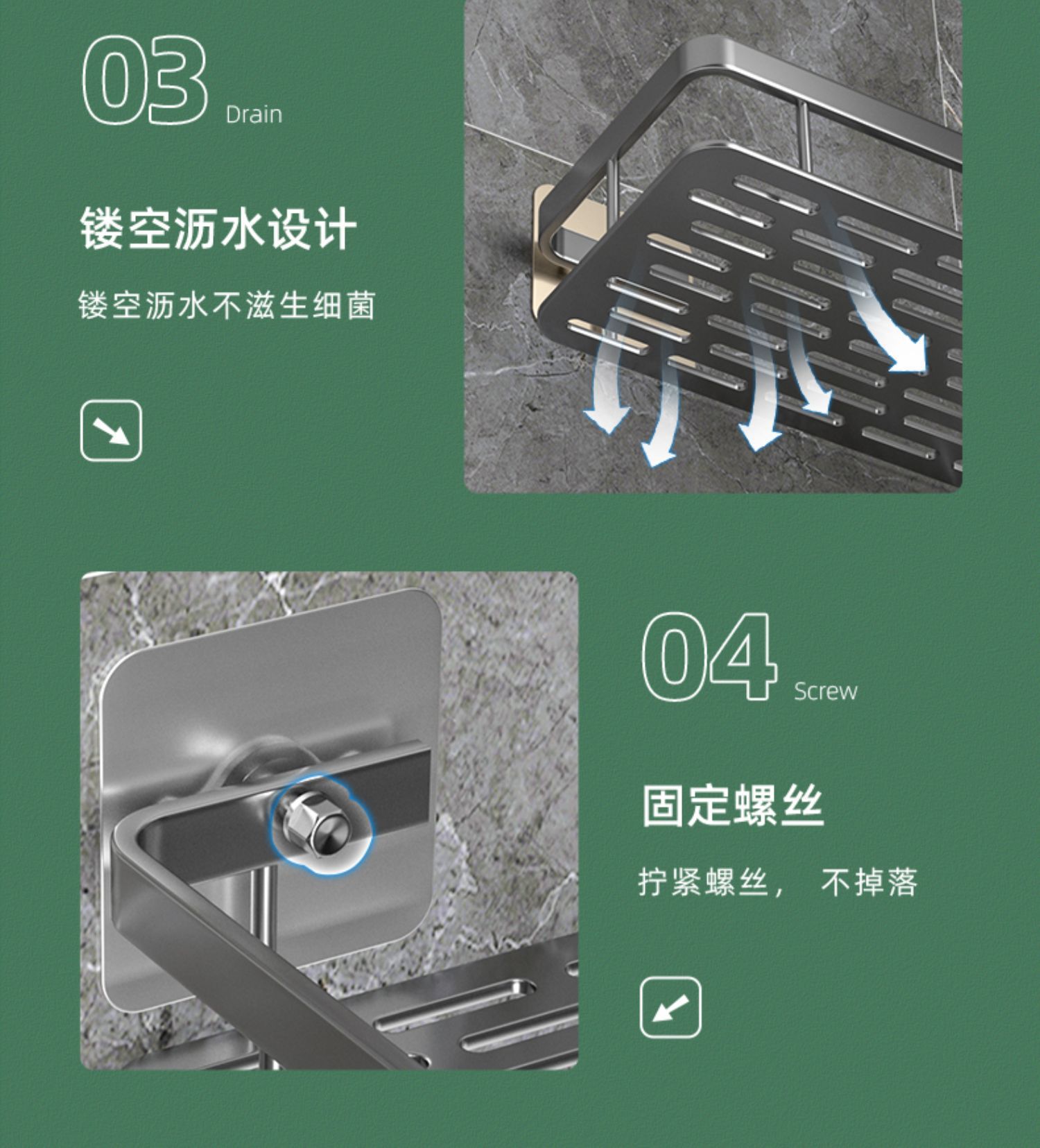 Угловая полка для ванной из алюминия, без сверления, для хранения на кухне и в ванной