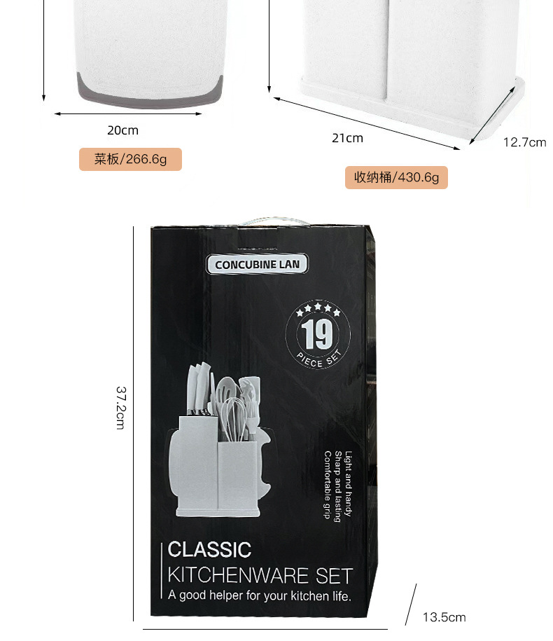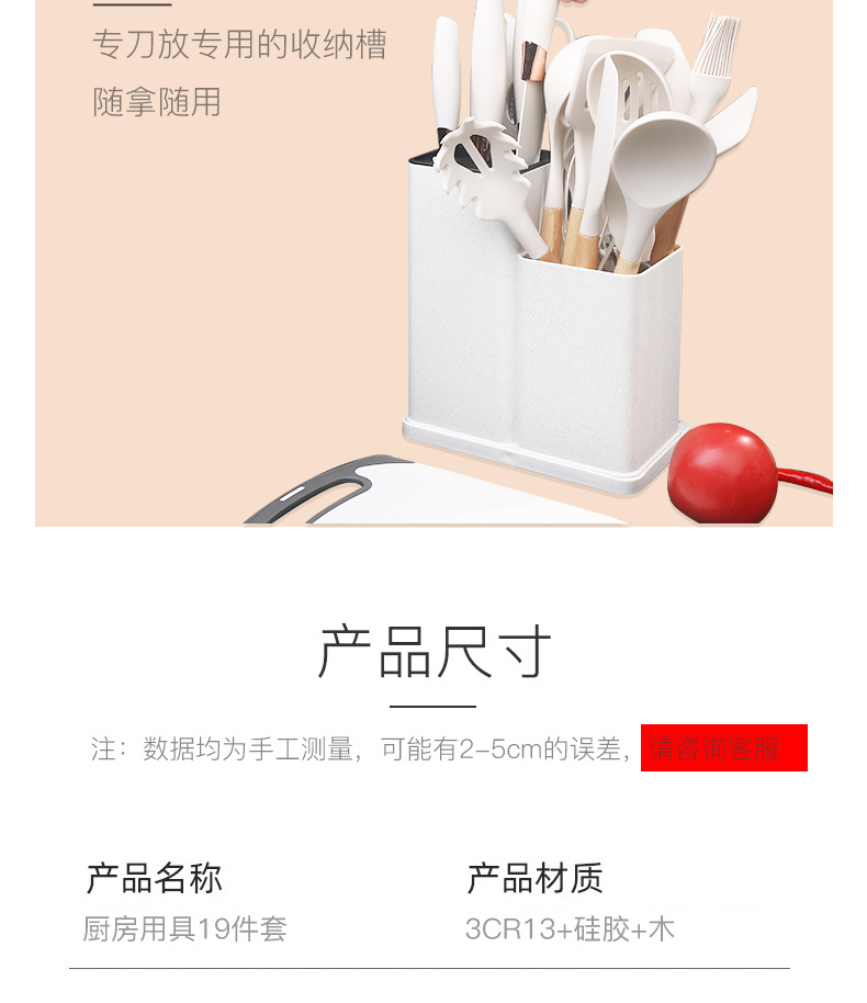 Набор ножей для кухни, кухонные ножницы, силиконовые кухонные принадлежности, цветной набор из 19 предметов, комбинация лопатки и ложки