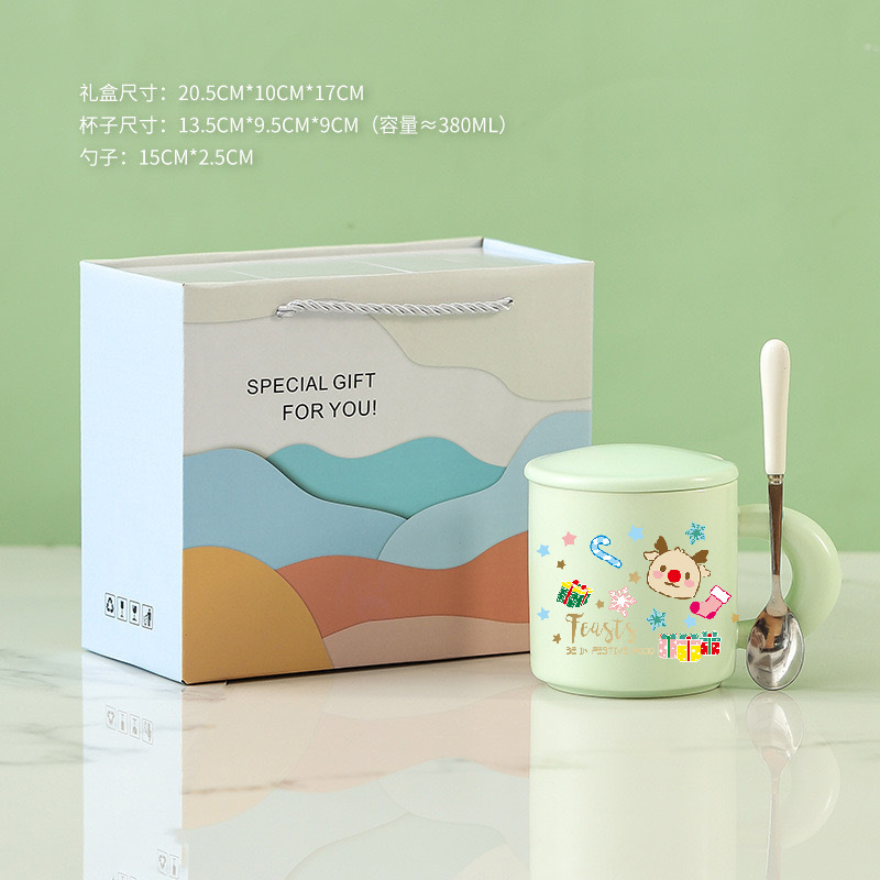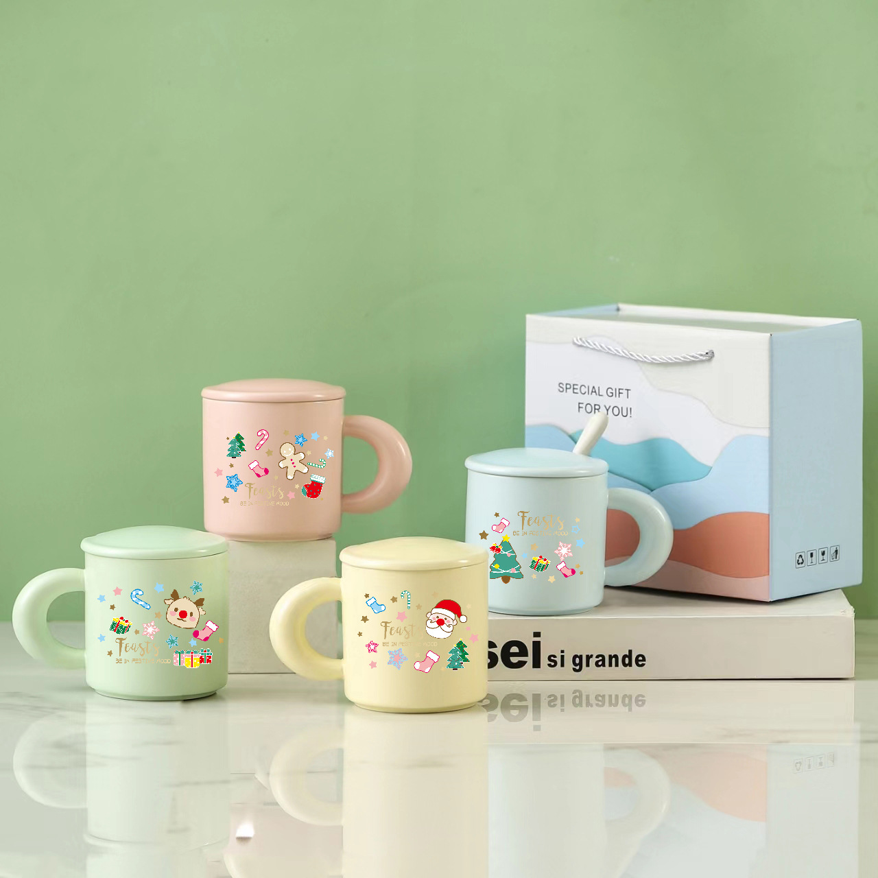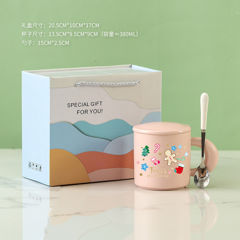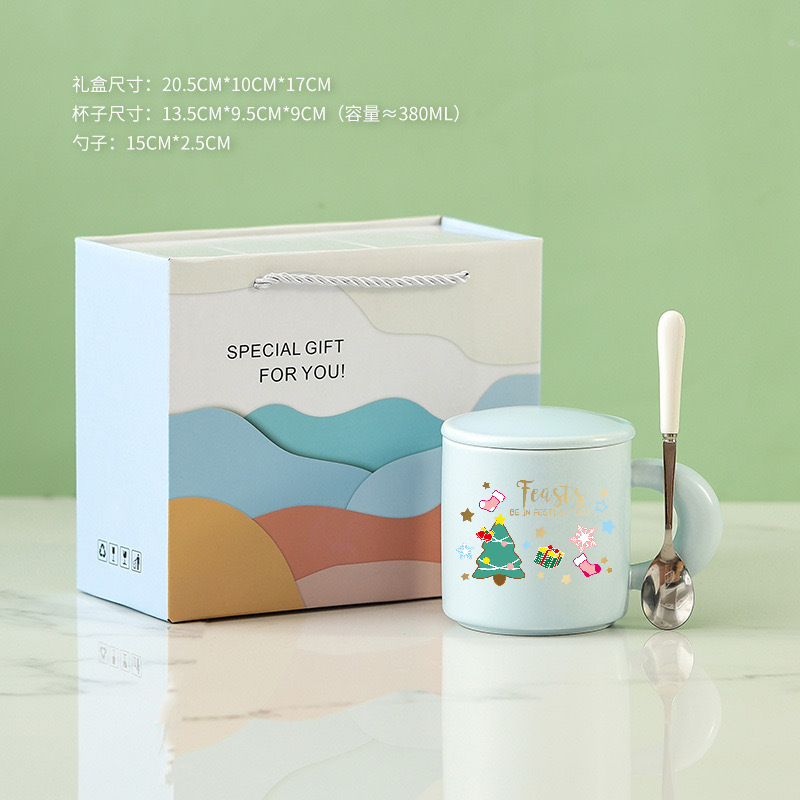Керамический рождественский подарок, набор чашек с крышкой и ложкой, кружка для молока, кружка для кофе с узором