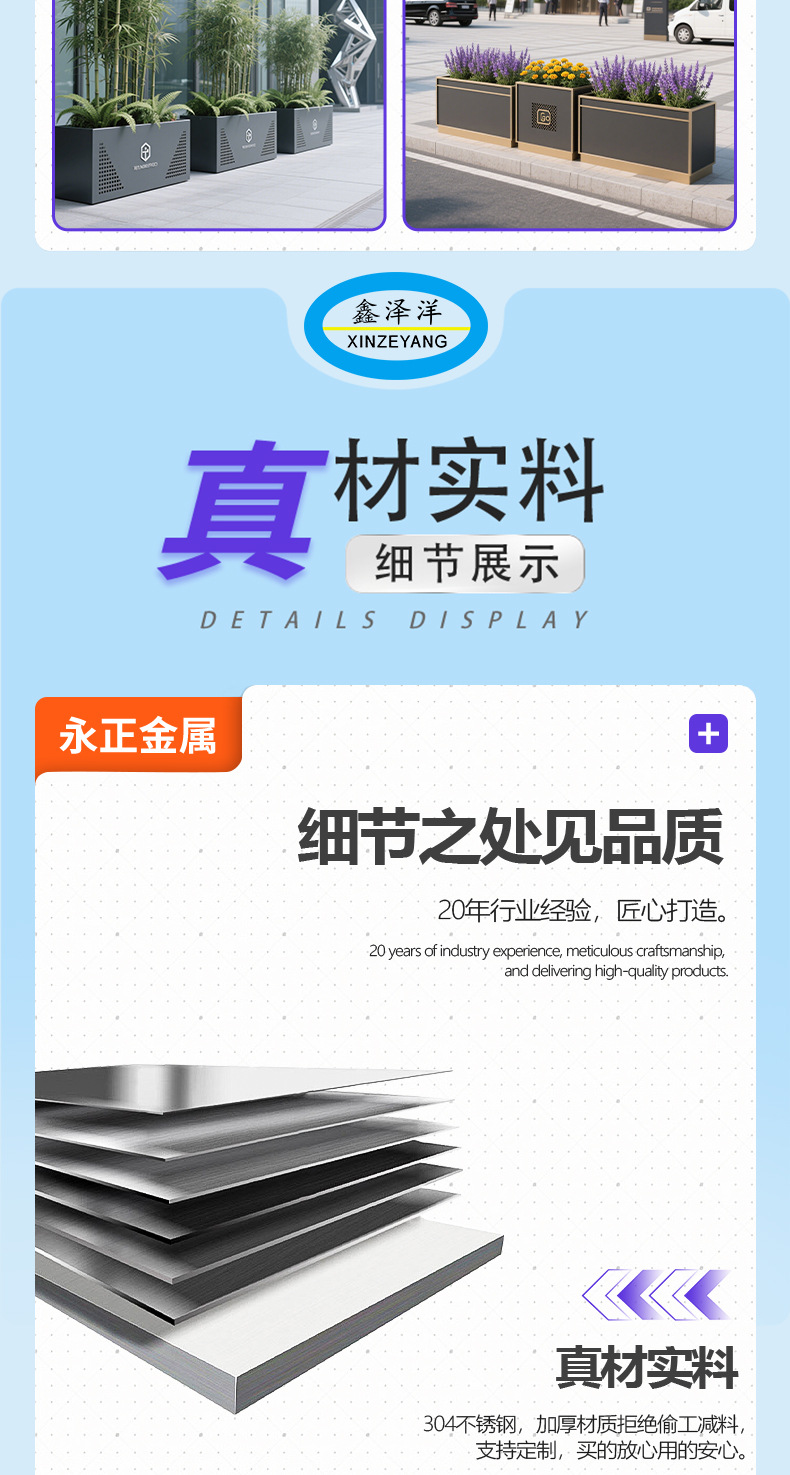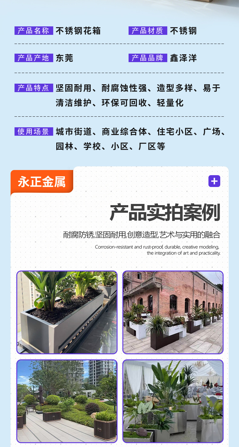 Уличный стальной цветочный ящик, простой стиль, ресторанный контейнер для деревьев, разделитель для офисных зданий, металлический цветочный ящик