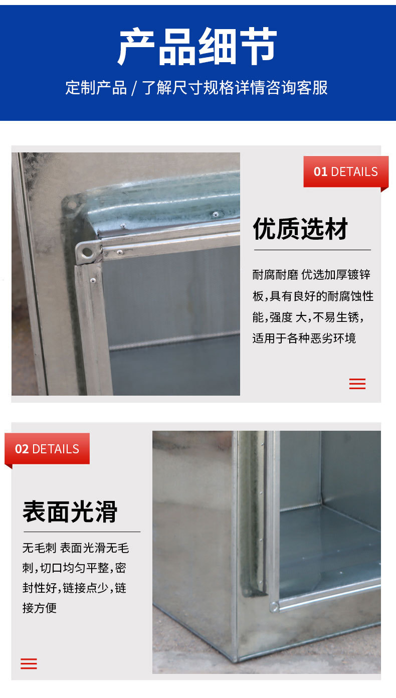 Тишина для промышленного вентилятора из оцинкованного листа 3 Square plate static pressure box in stock square plate static pressure box industrial fan galvanized plate silencer 304 fan duct static pressure box
