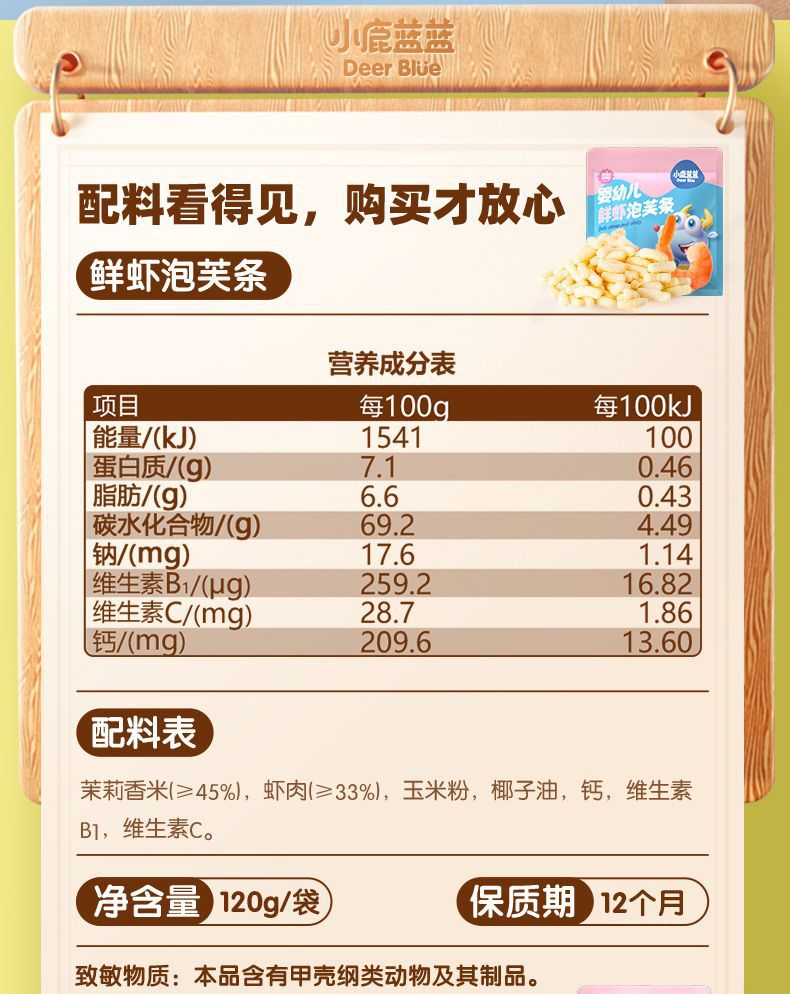 📦 | [3 times the bulk package] baby label fresh shrimp puff strips 120g | 1шт: ¥16.00, 12шт: ¥14.50, 24шт: ¥13.50 | 944 | 5315684054309 | |