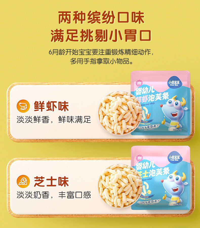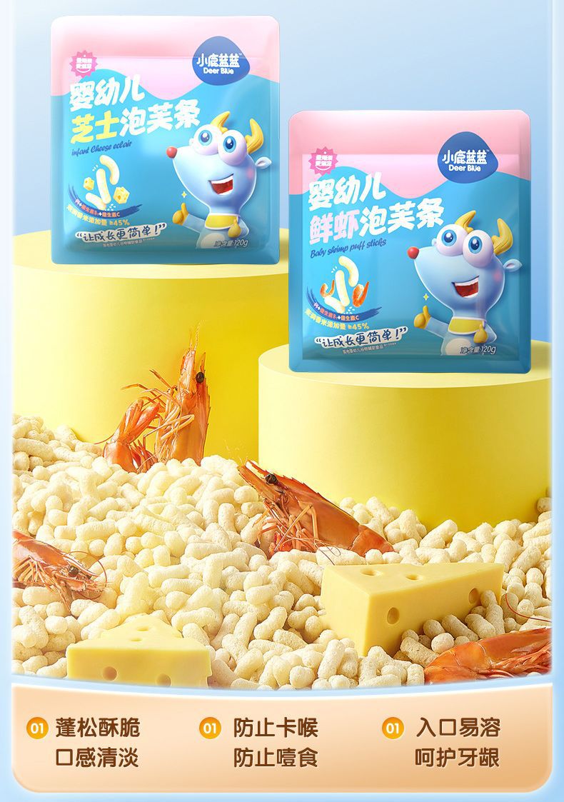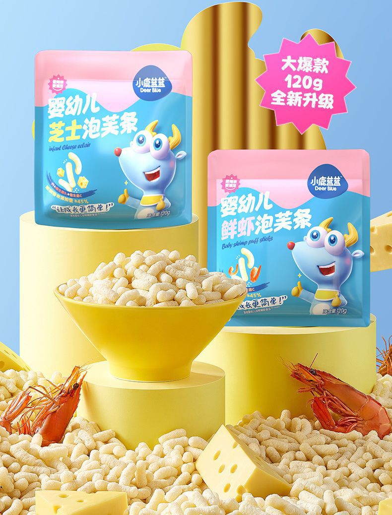 📦 | [3 times the bulk package] baby label fresh shrimp + cheese puff strip 120g | 1шт: ¥16.00, 12шт: ¥14.50, 24шт: ¥13.50 | 299 | 5315722734885 |