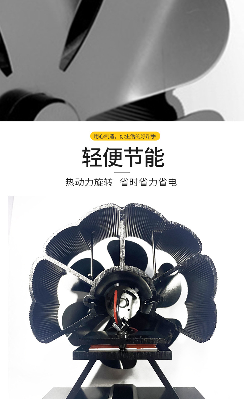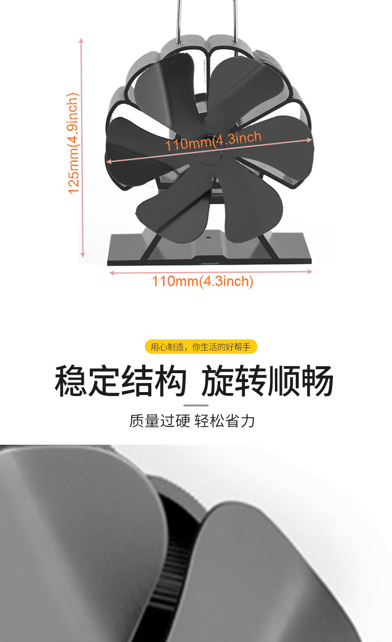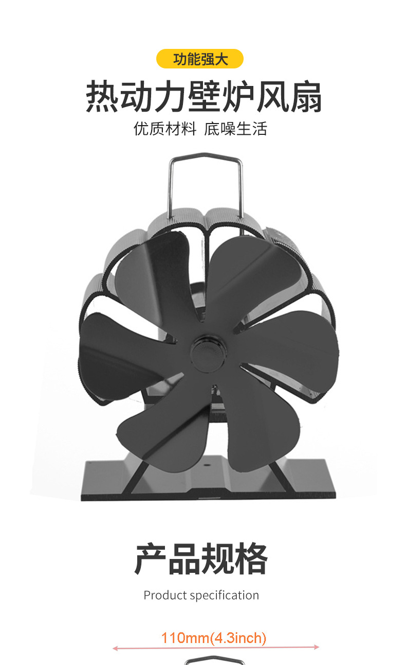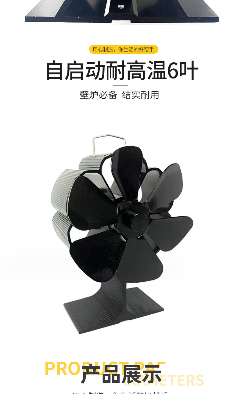 Кросс-бордный вентилятор с 6 лопастями, тепловая мощность, вращающийся, алюминиевый, термостойкий, для камина