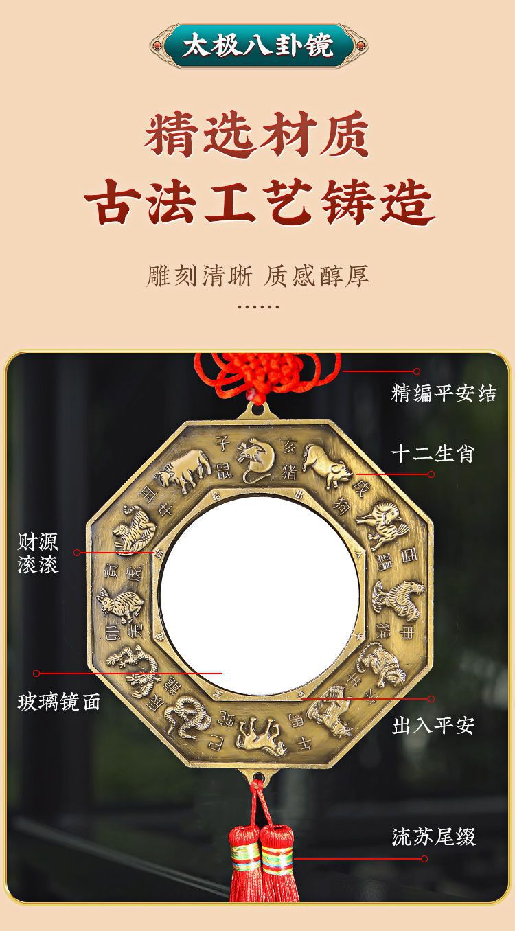 Подвеска зеркала Багуа с восьми диаграммами и двенадцатью знаками зодиака