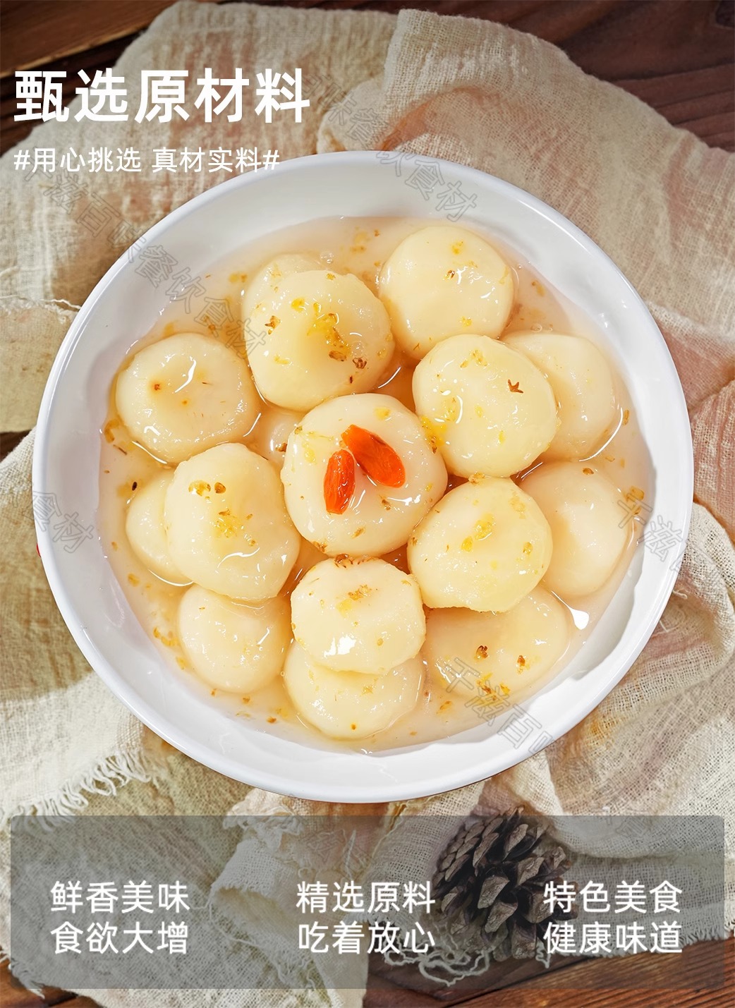 Османтус, водяные каштаны, консервированные фрукты, кантонские холодные блюда, десерты, готовые к употреблению в сахарном сиропе, отели и клубы