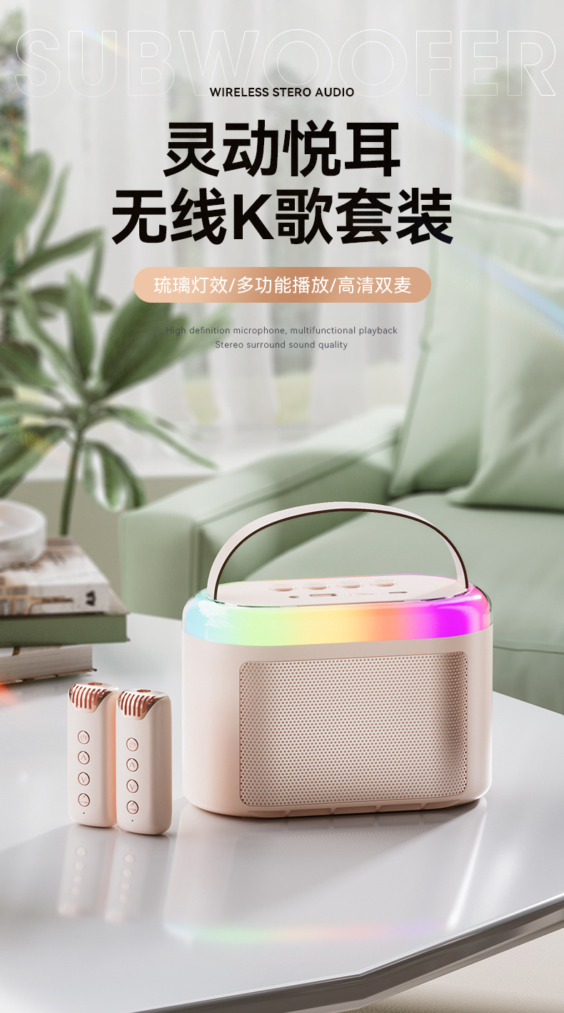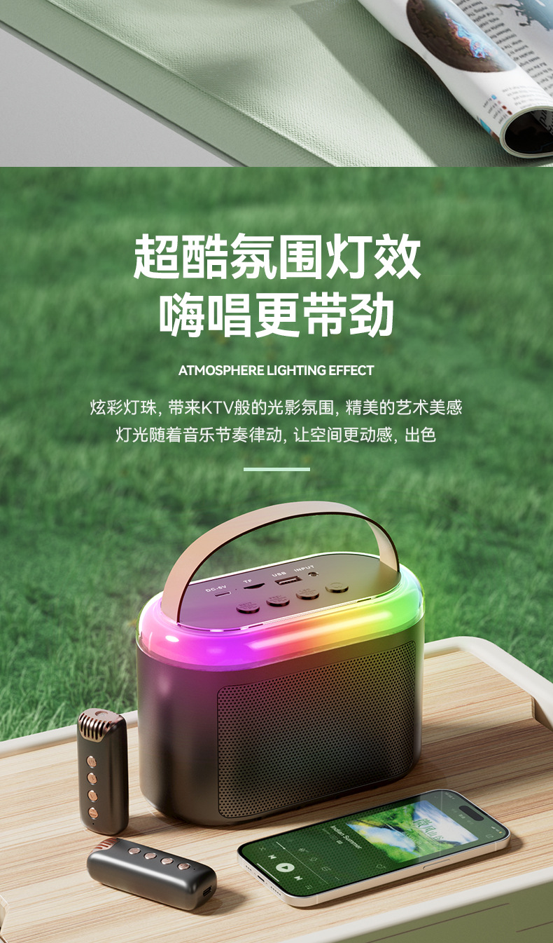 Портативный беспроводной микрофон Q6 с цветной атмосферной подсветкой, универсальный Bluetooth-караоке