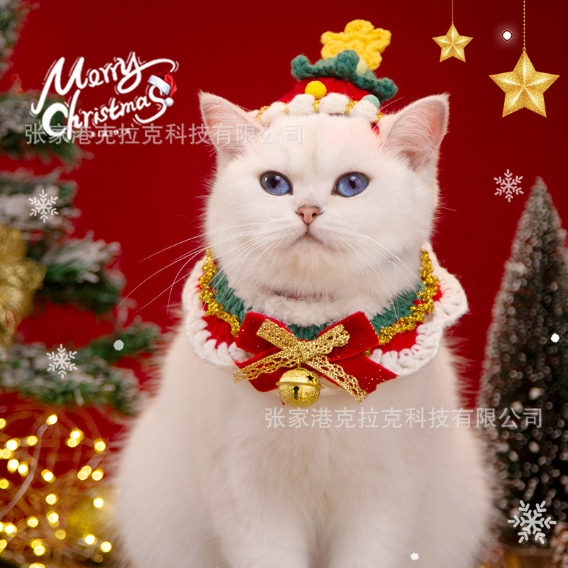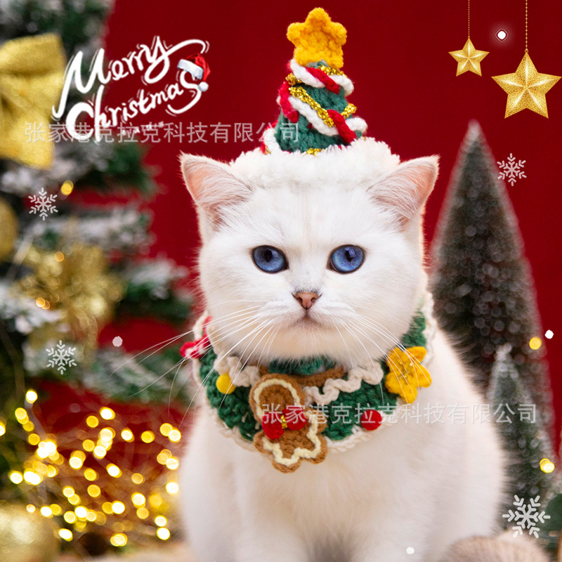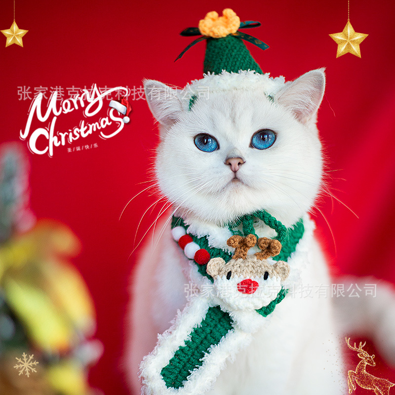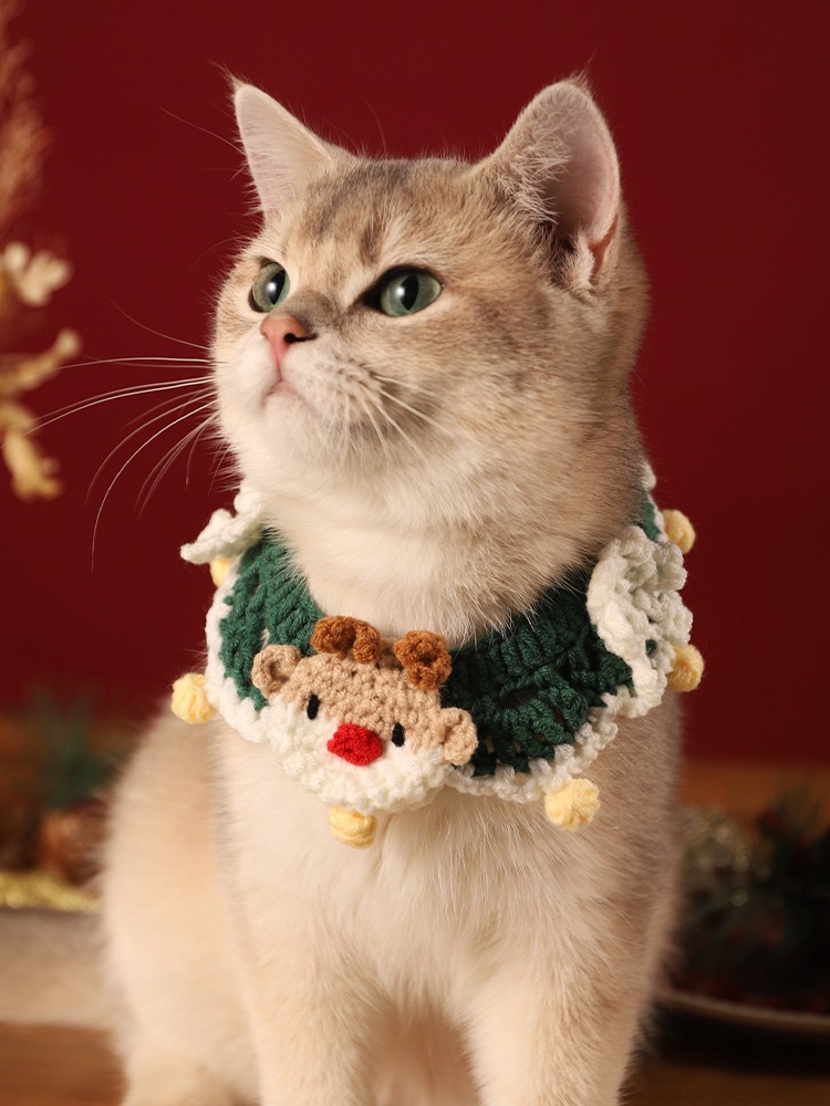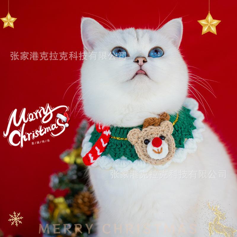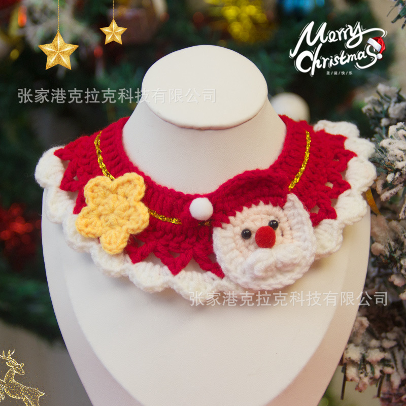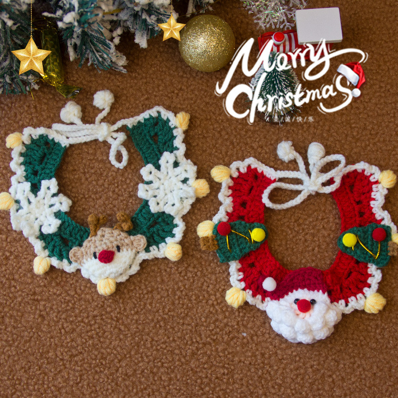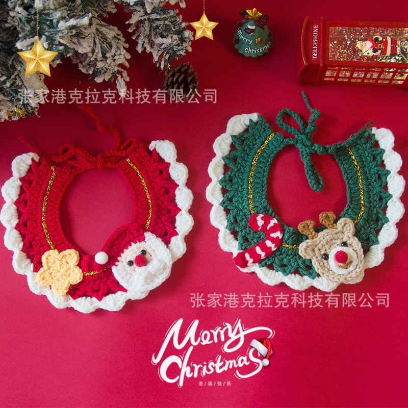 рождественский шарф для питомцев, вязаный шарф с дизайном оленей, санты и снеговиков