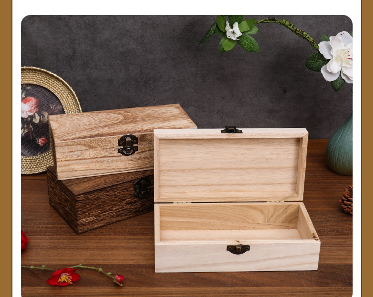 в наличии Простой деревянный ящик из тунгового дерева прямоугольной формы с крышкой Деревянный ящик для хранения Винтажная упаковка для подарков