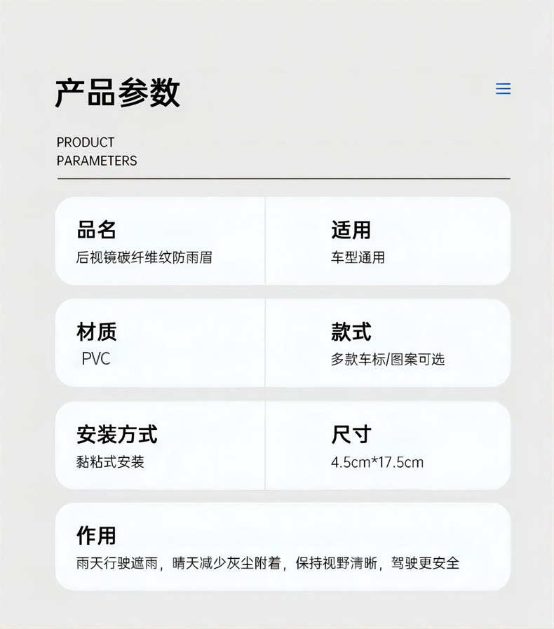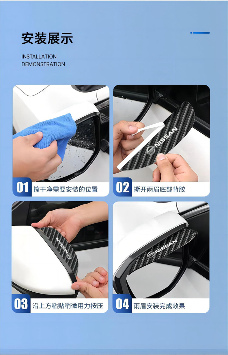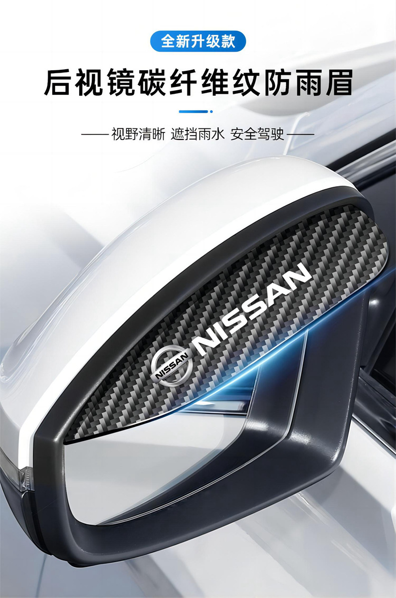 Модель Cross-border carbon fiber texture car rearview mirror rain eyebrow rain cover reverse mirror rain shield aluminum alloy rain shield