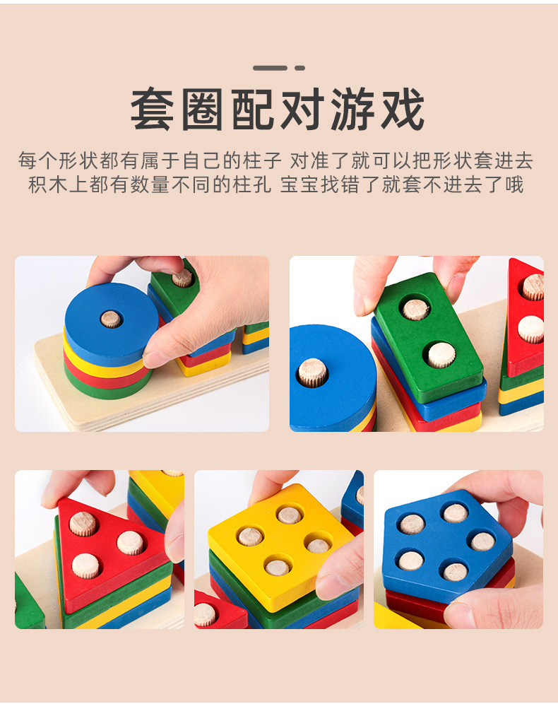 Детские геометрические фигуры пять наборов колонок строительных блоков детский сад раннее образование сопоставление форм цветовое восприятие деревянные образовательные игрушки