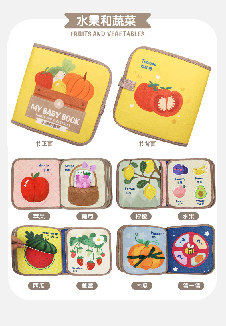 Тихая книга из ткани для детей, метод Монтессори, можно жевать и рвать