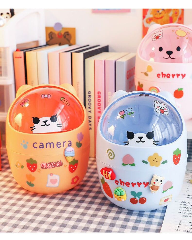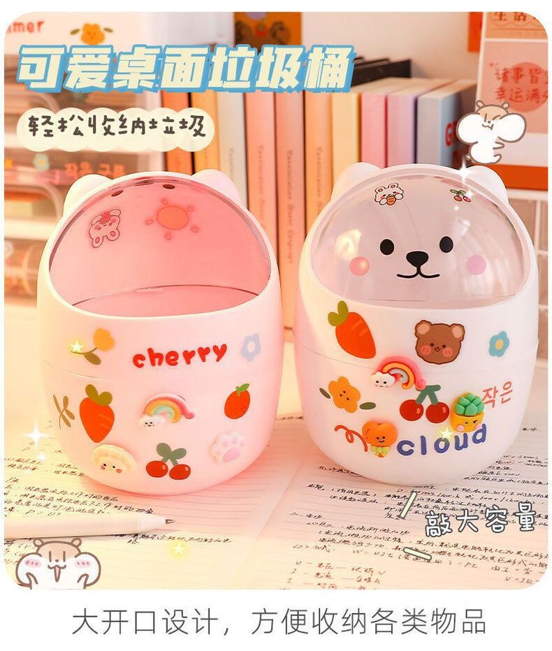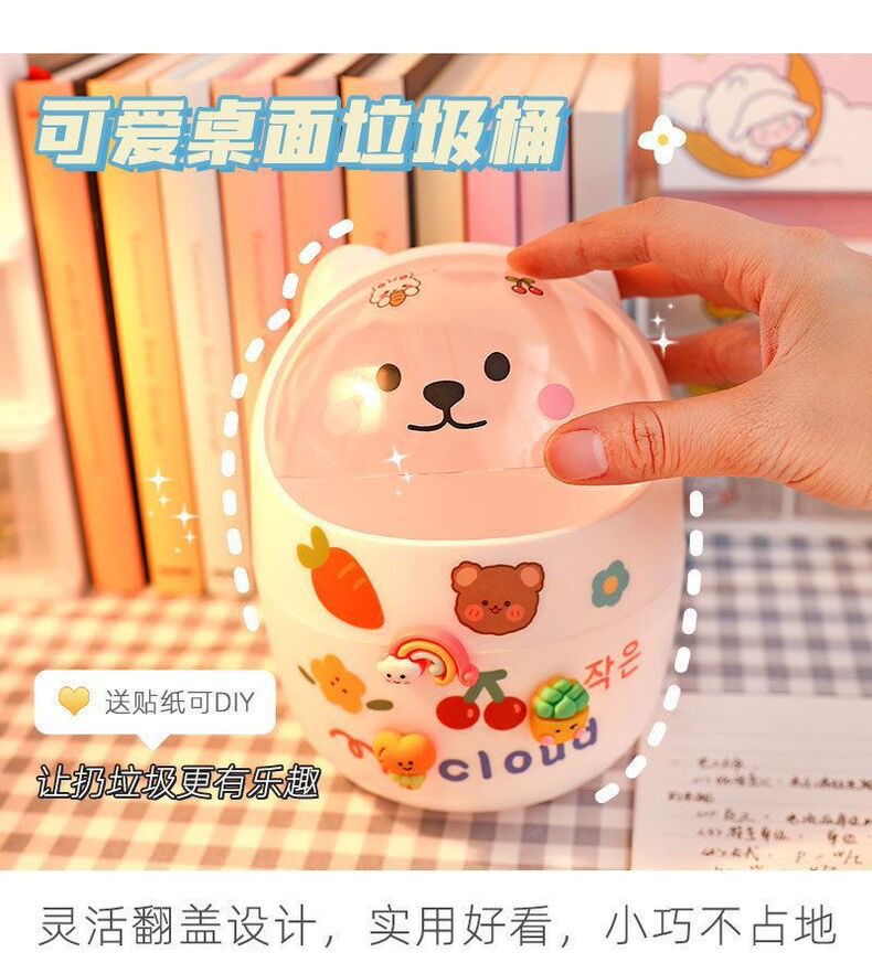 Мини мусорный бак для стола с крышкой, милый контейнер для хранения для девочек, офисный держатель для ручек