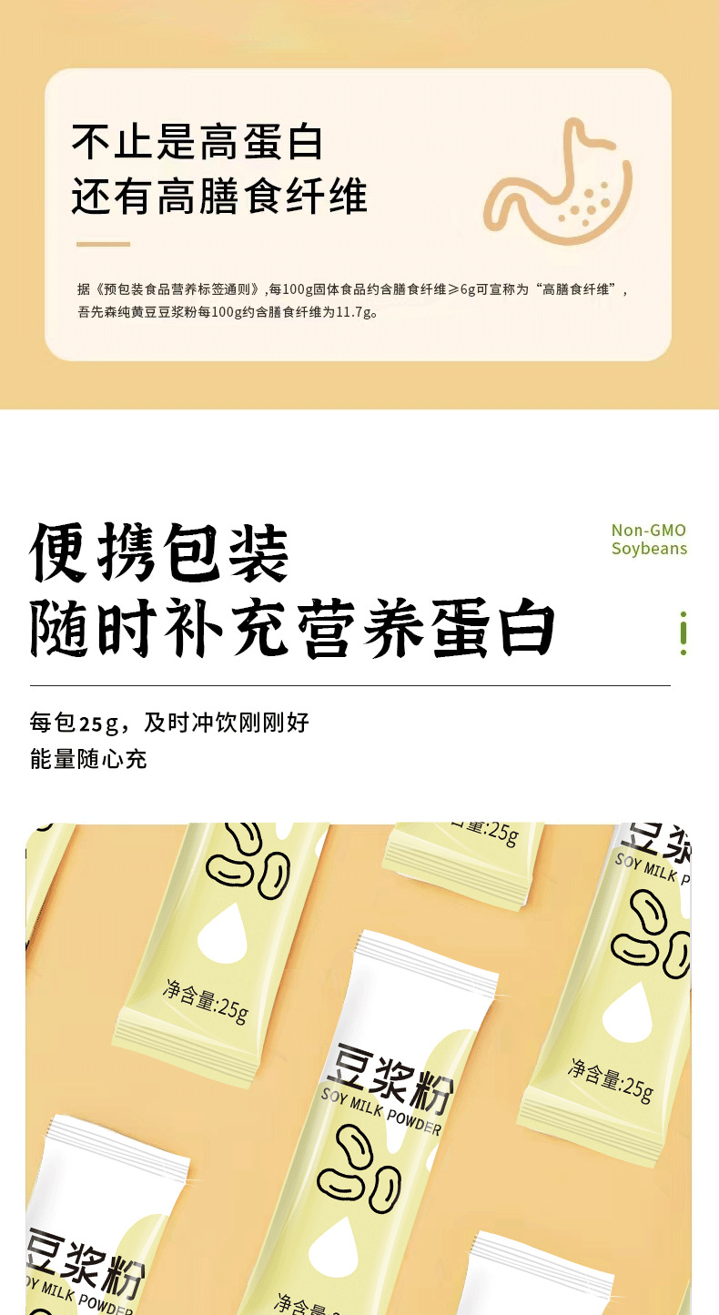 Порошок соевого молока, без ГМО, чистый соевый порошок, мгновенный, однородный, завтрак, замена пищи, чистый соевый порошок 25 г/пакет