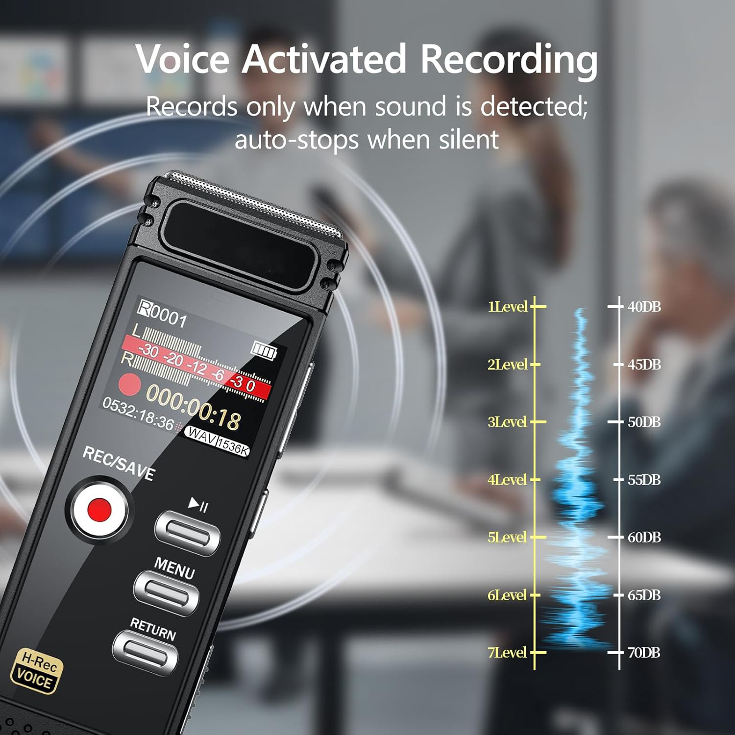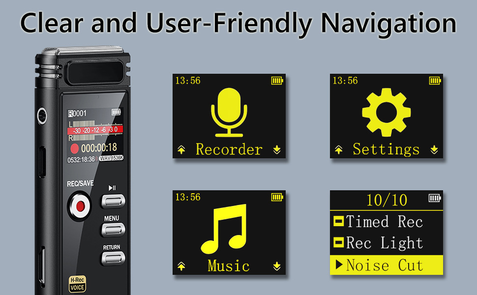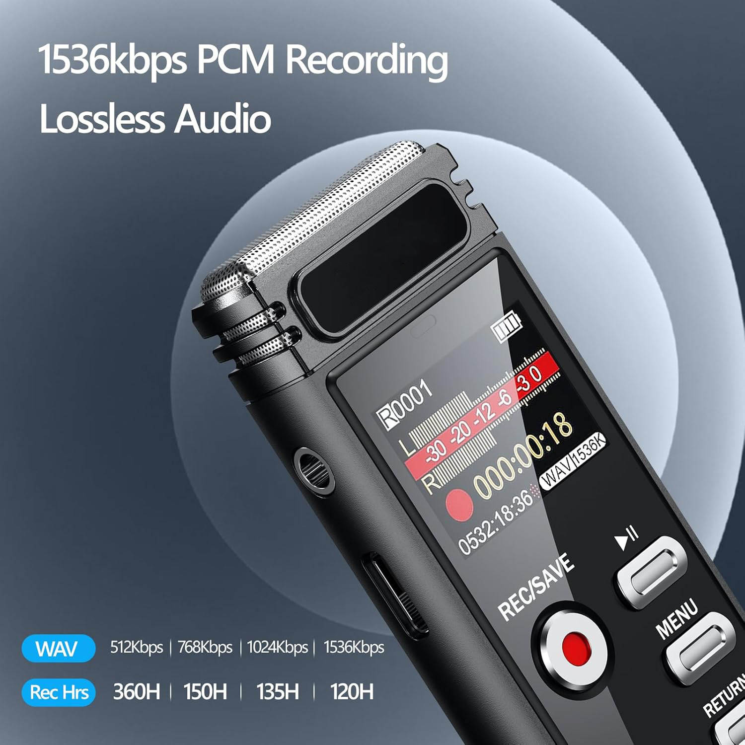 采用专业录音笔七级降噪芯片,支持高清无损线性录音1536Kbps。