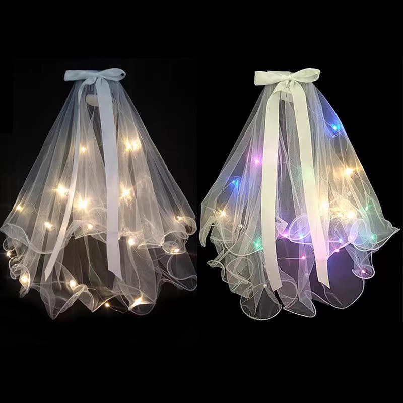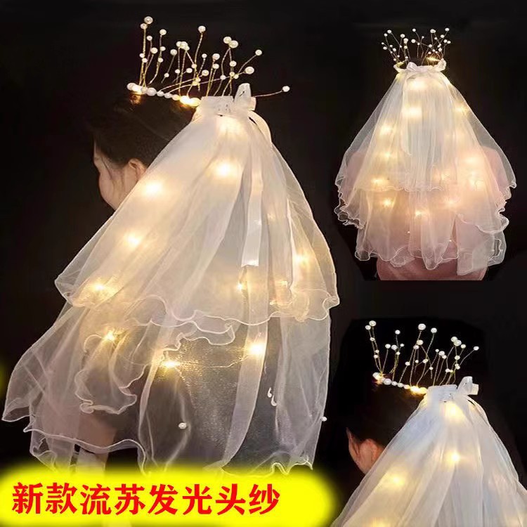 Вуаль с огнями, двойная вуаль с жемчужной короной и лентами, свадебное платье