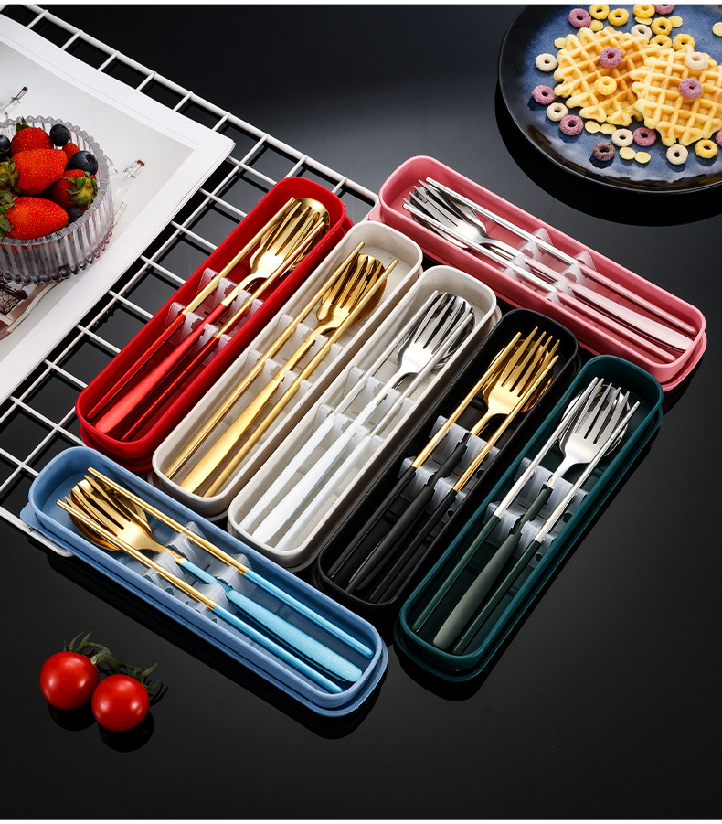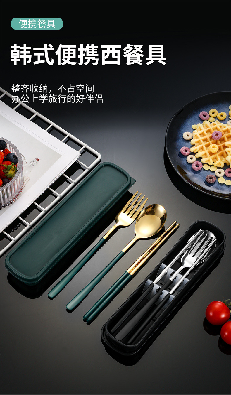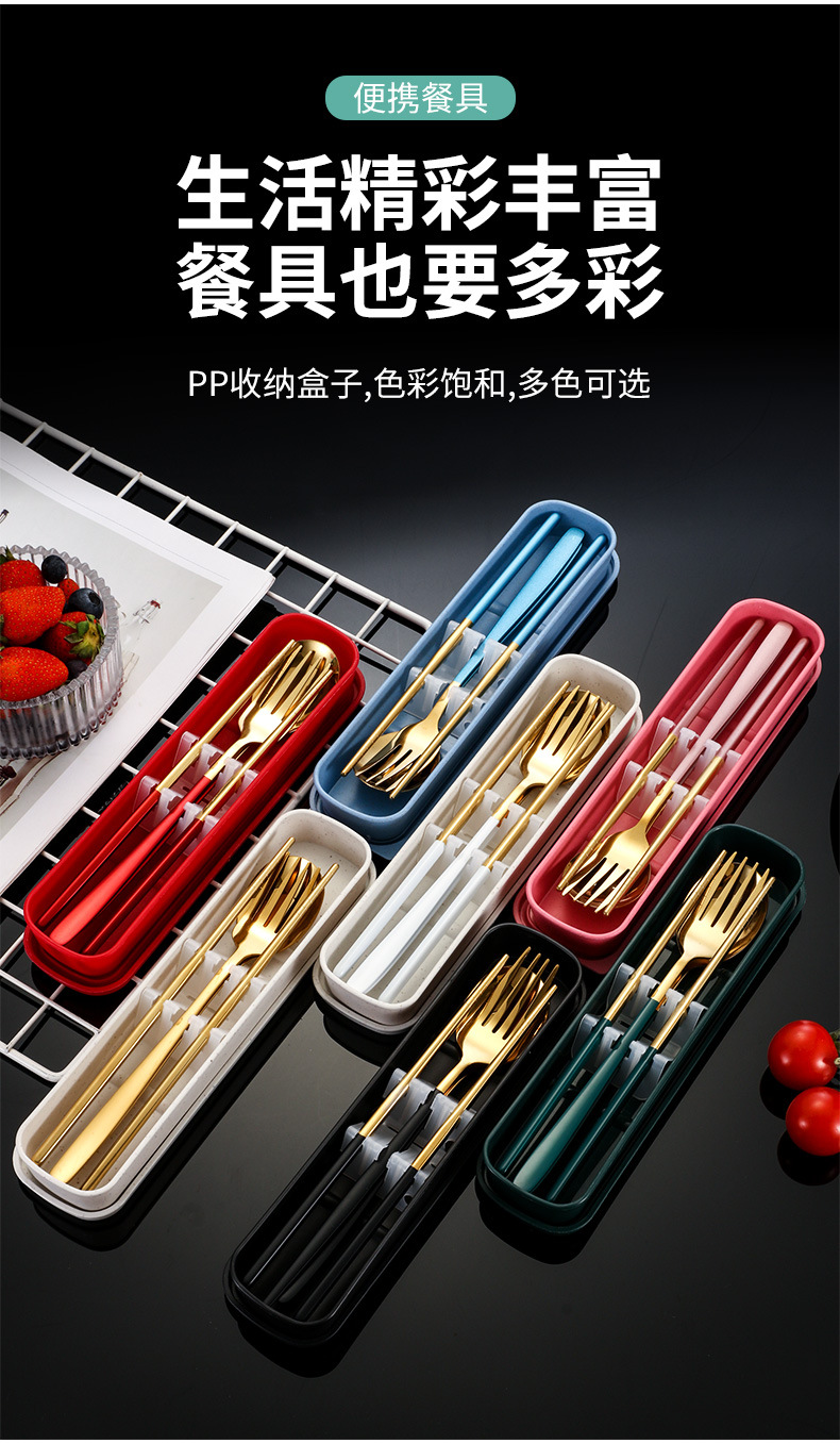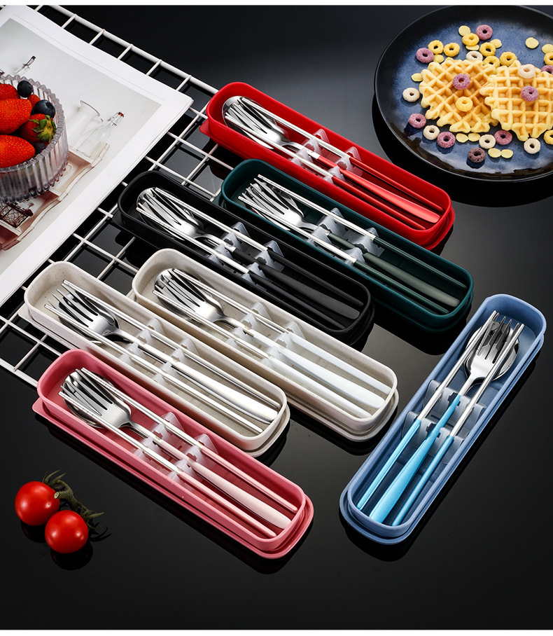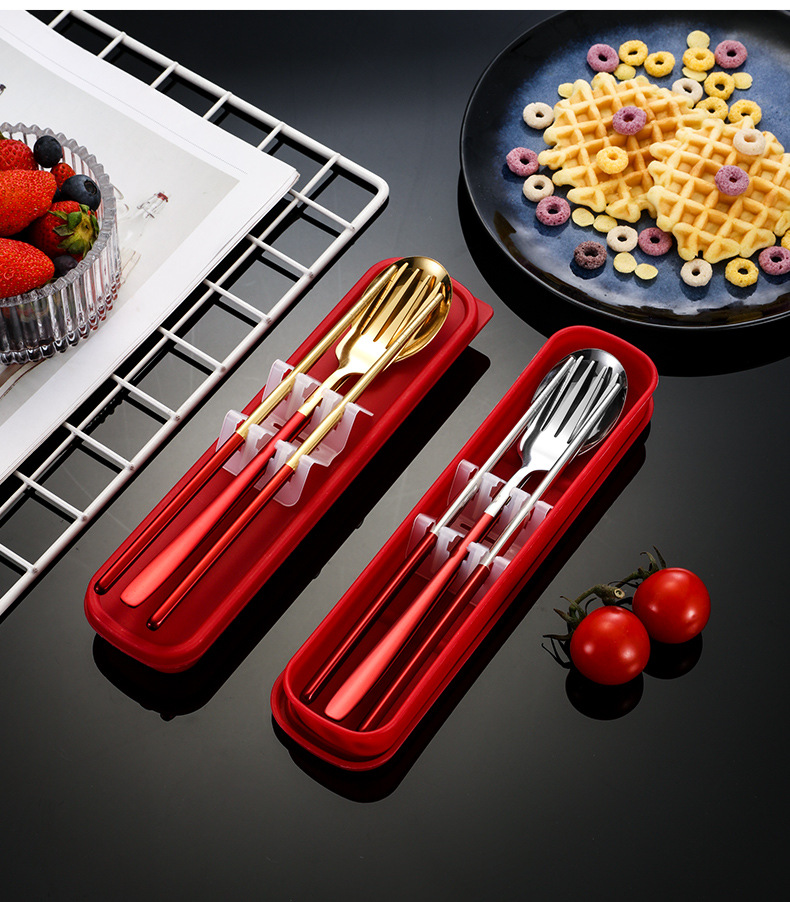 Набор портативной столовой посуды из нержавеющей стали 304, корейская посуда, вилка, палочки для еды, три предмета, подарок для студентов и офисных работников