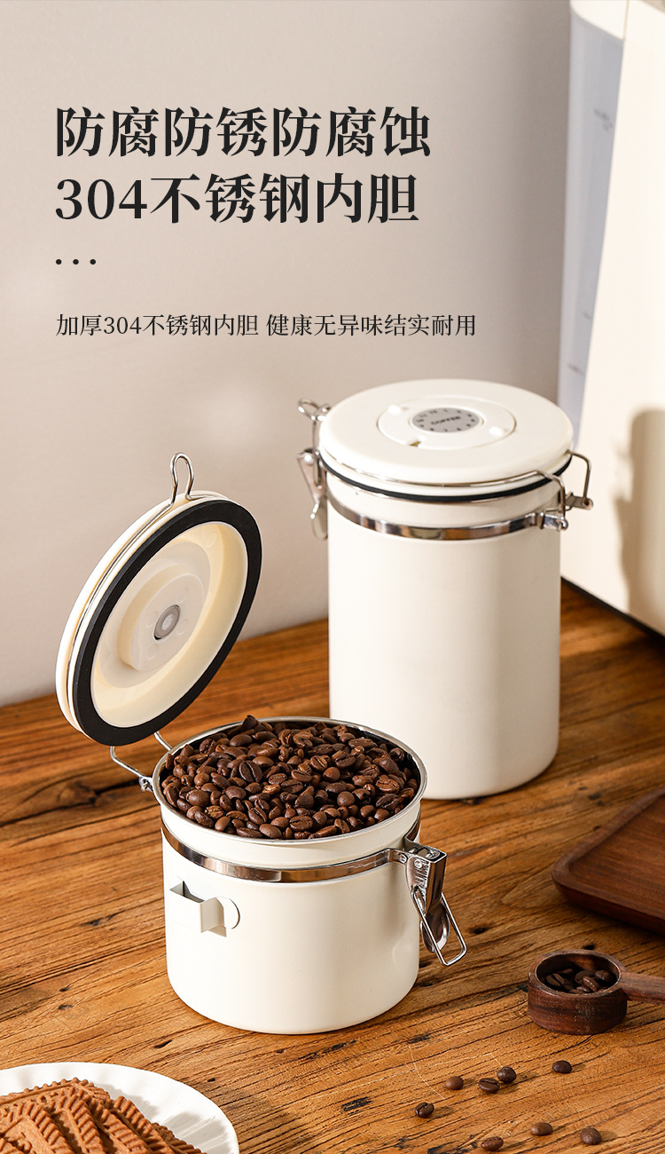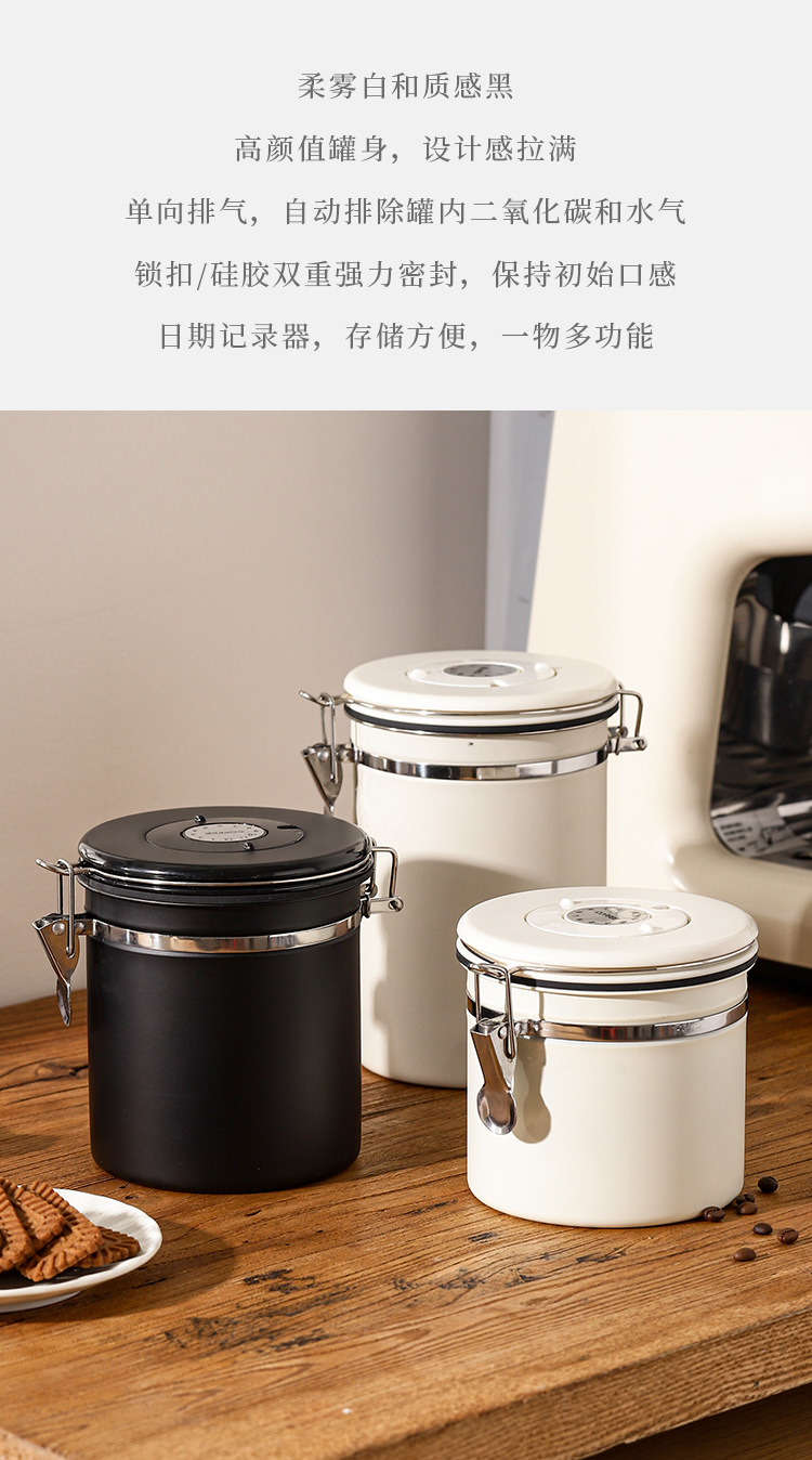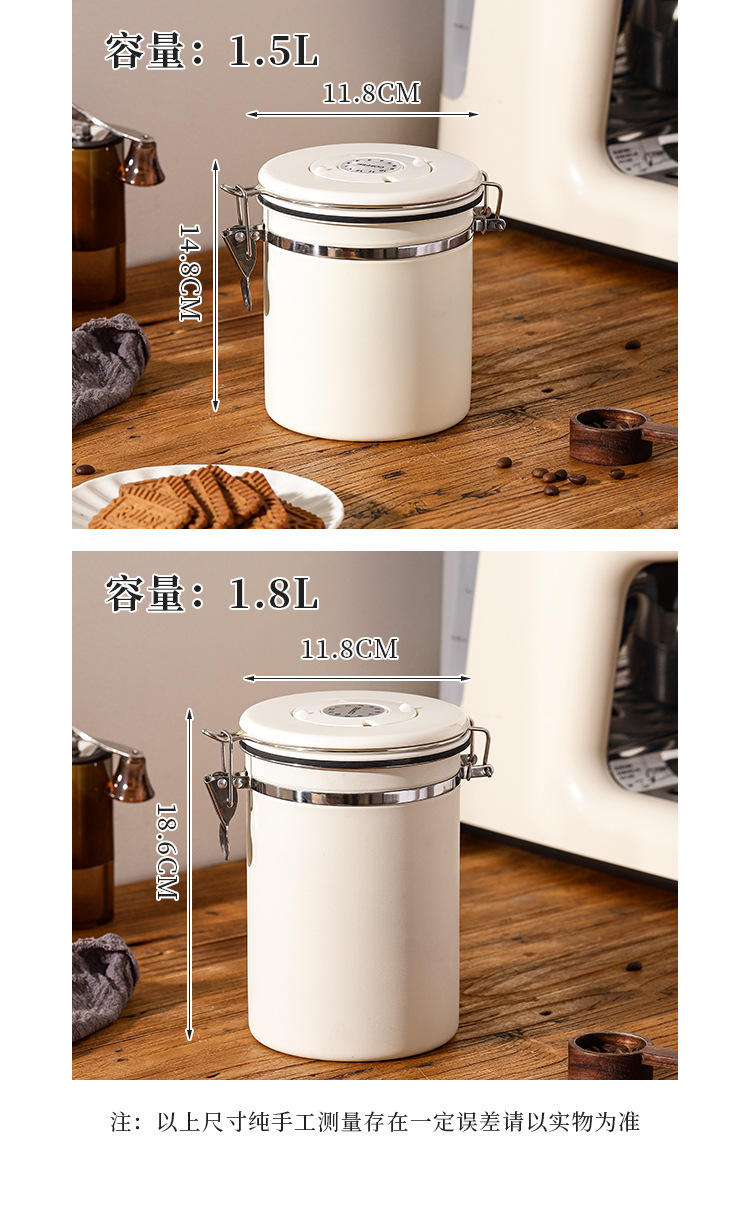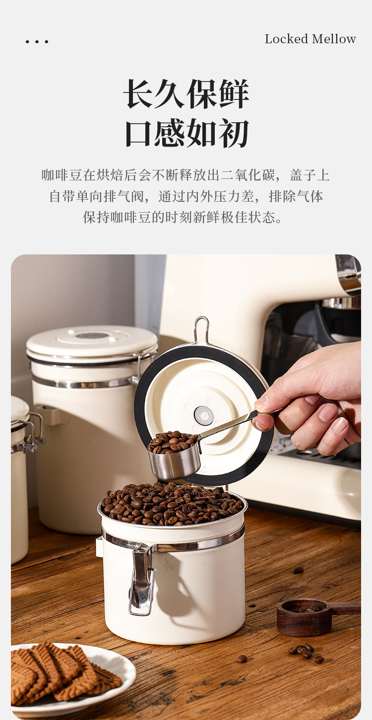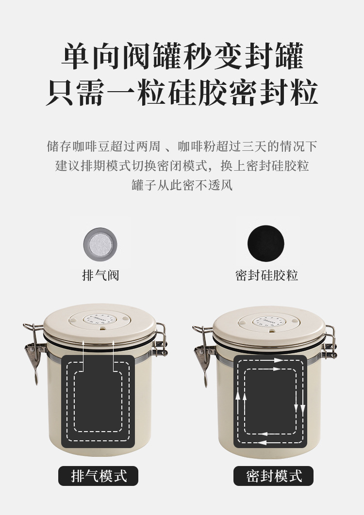 温馨提示:此款咖啡豆密封罐,罐身为304不锈钢,盖子为ABS材质;由于这款为专门存放咖啡烘焙豆的密封罐,盖子有单向排气阀门,所以并非完全“密封”,因为咖啡豆在存放过程中会释放大量的二氧化碳,二氧化碳会跟咖啡豆二次反应而影响口感,单向排气阀就是排出这多余的二氧化碳,这样才能更大限度的延长咖啡豆的蕞佳品鉴期。