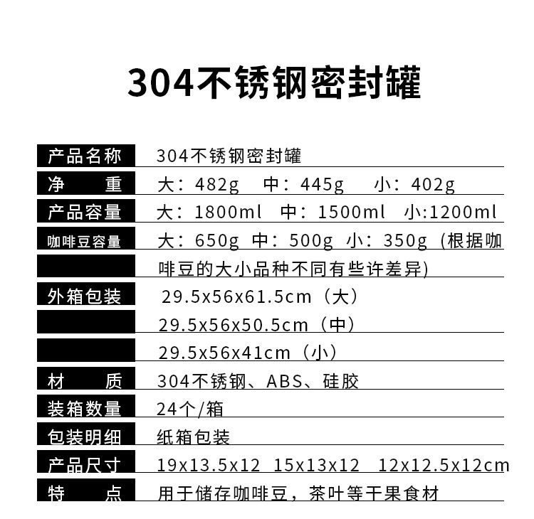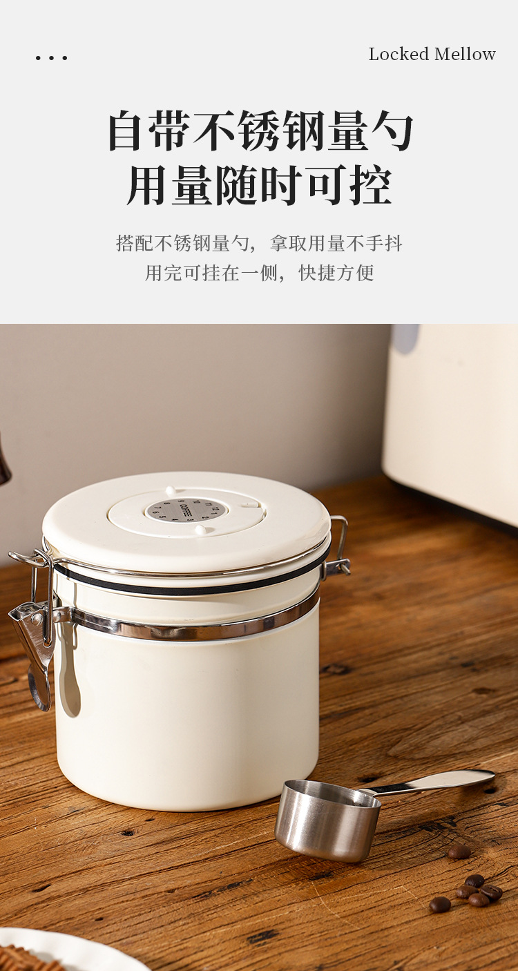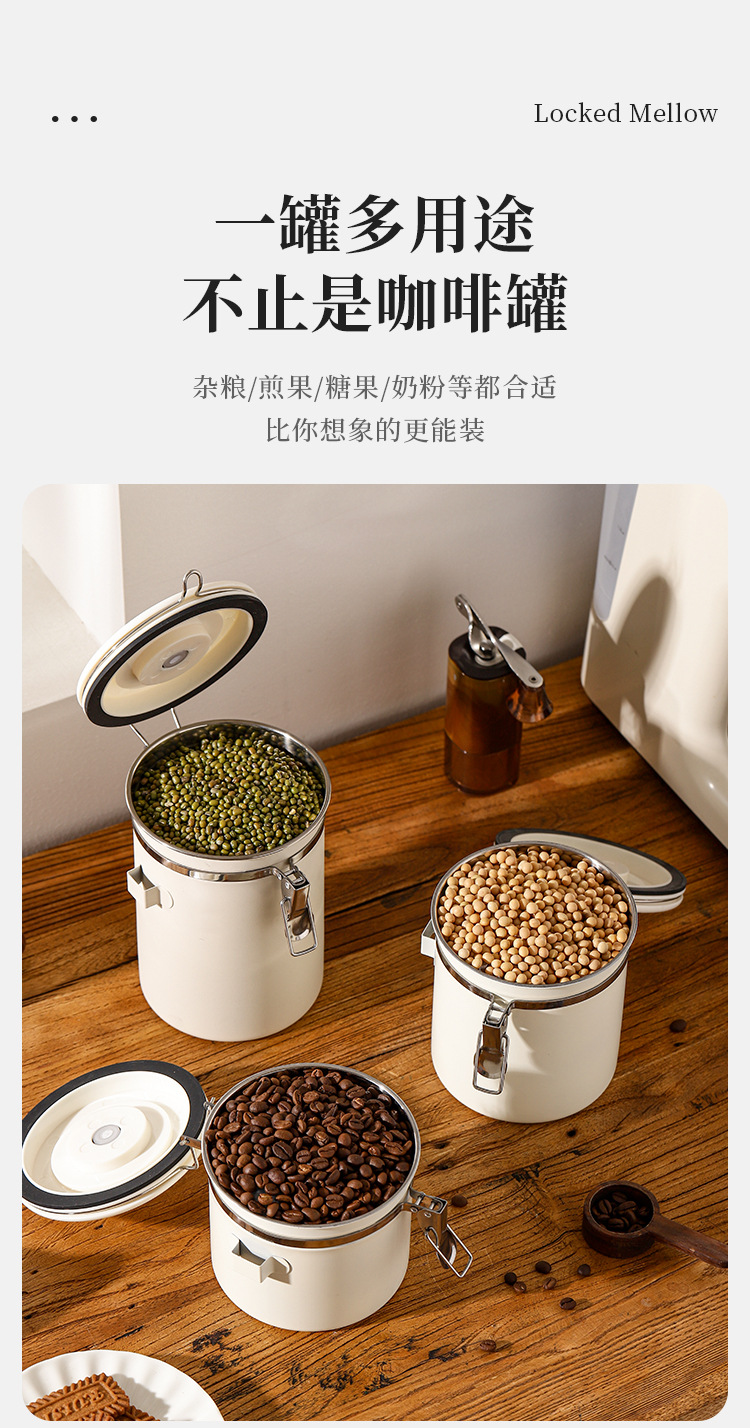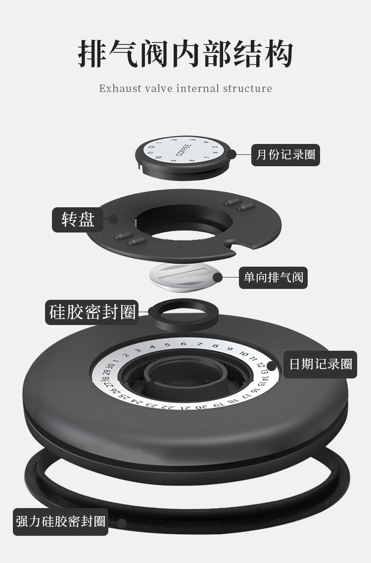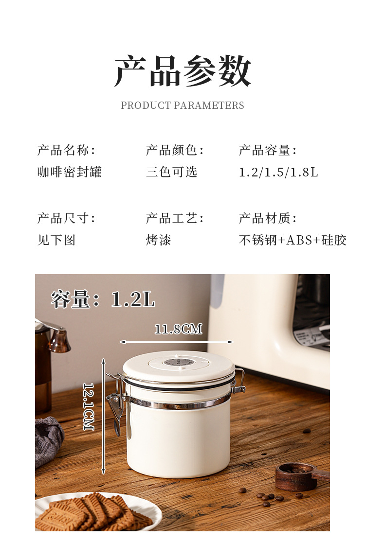 温馨提示:此款咖啡豆密封罐,罐身为304不锈钢,盖子为ABS材质;由于这款为专门存放咖啡烘焙豆的密封罐,盖子有单向排气阀门,所以并非完全“密封”,因为咖啡豆在存放过程中会释放大量的二氧化碳,二氧化碳会跟咖啡豆二次反应而影响口感,单向排气阀就是排出这多余的二氧化碳,这样才能更大限度的延长咖啡豆的蕞佳品鉴期。