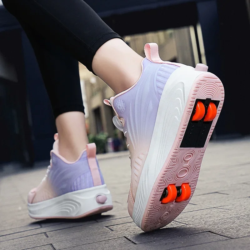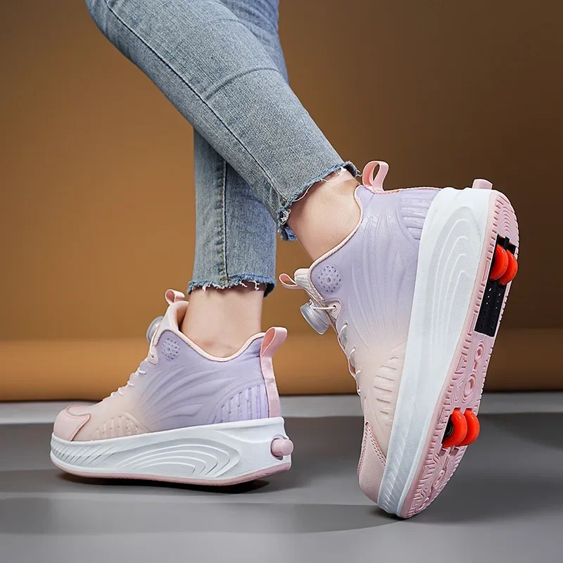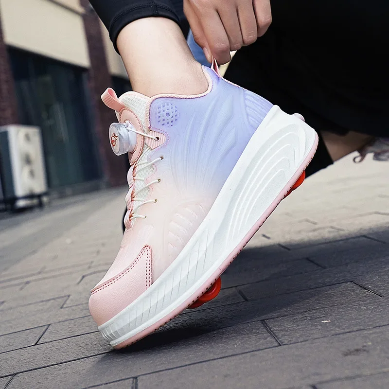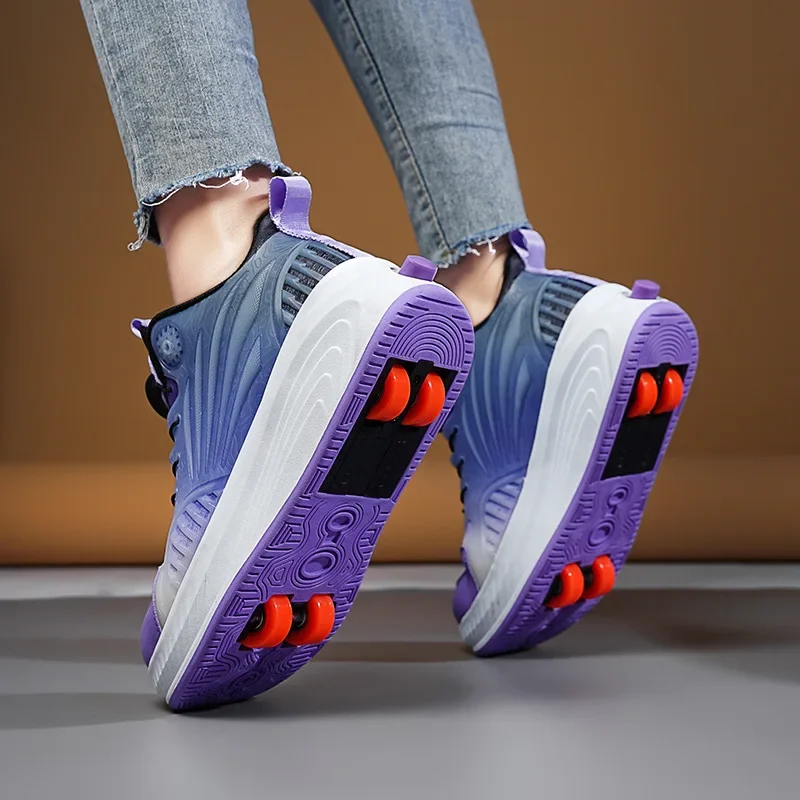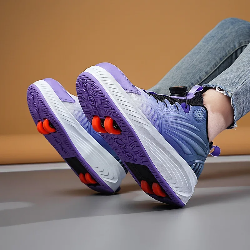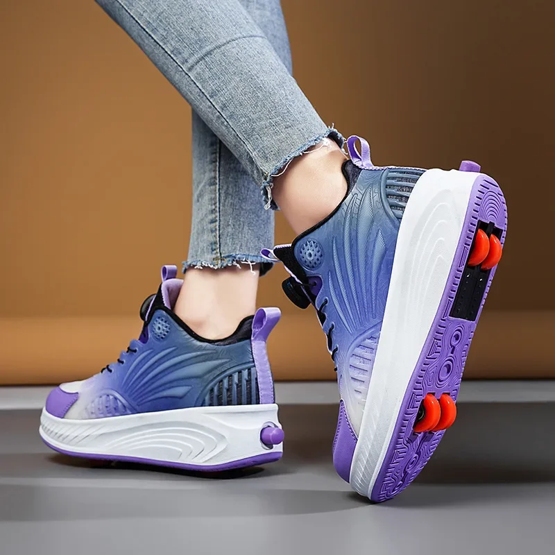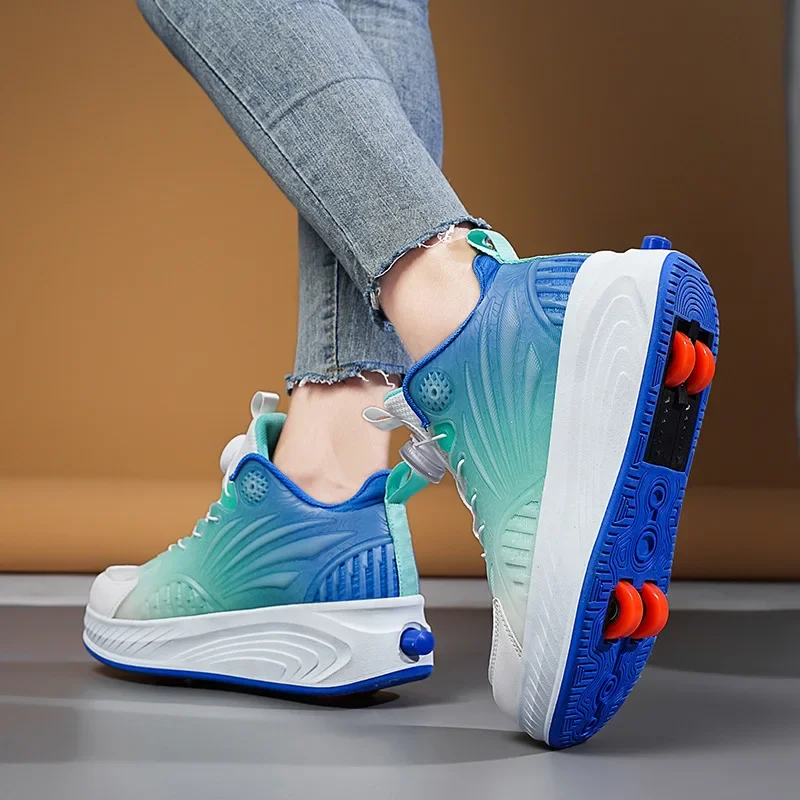 - Double Row Wheels: Equipped with double row wheels, these shoes provide stability and control during movement.