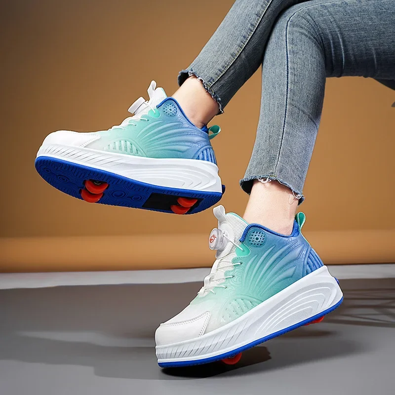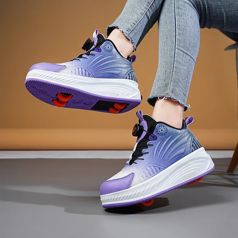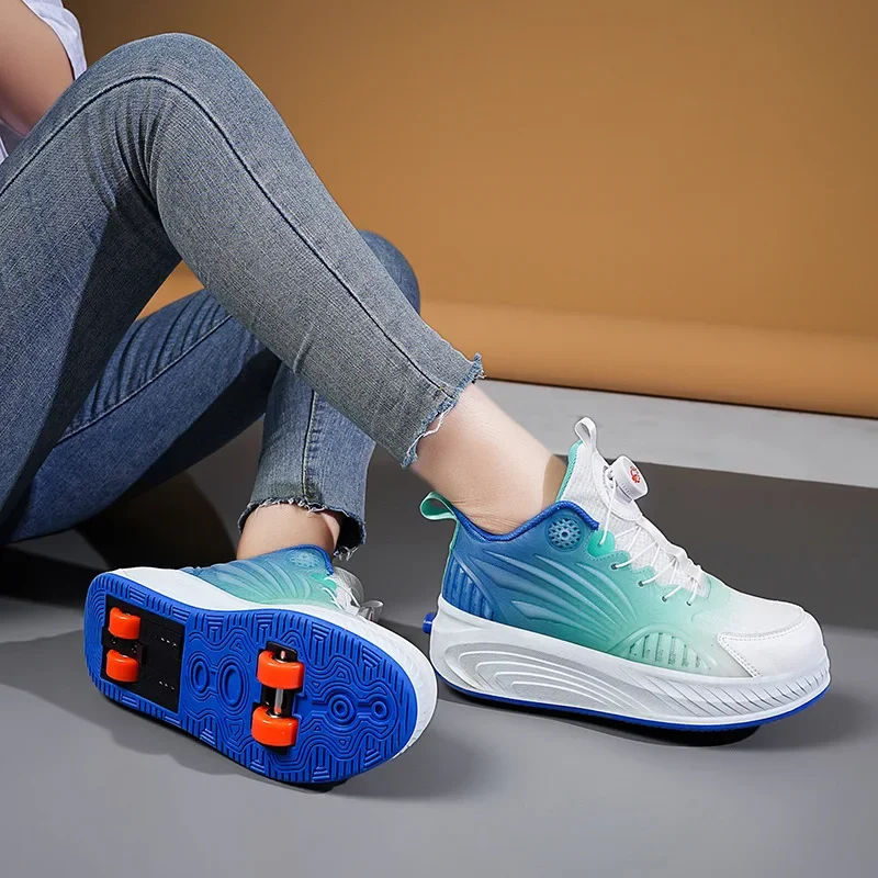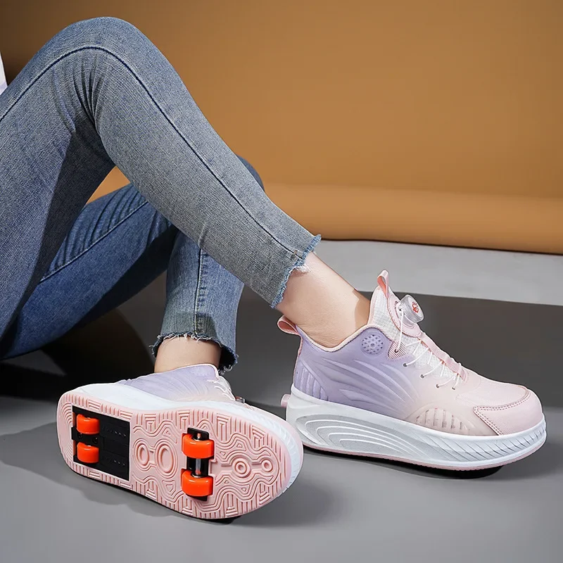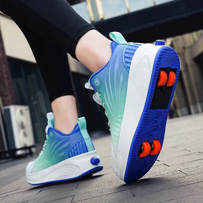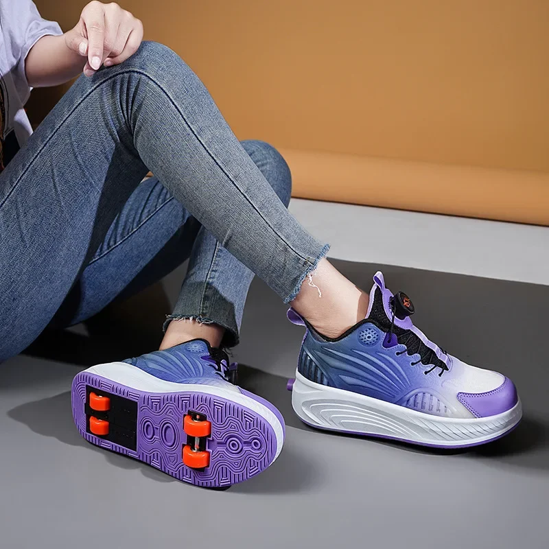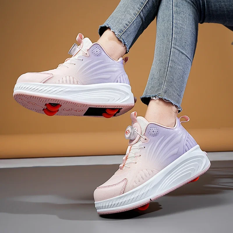 - Double Row Wheels: Equipped with double row wheels, these shoes provide stability and control during movement.